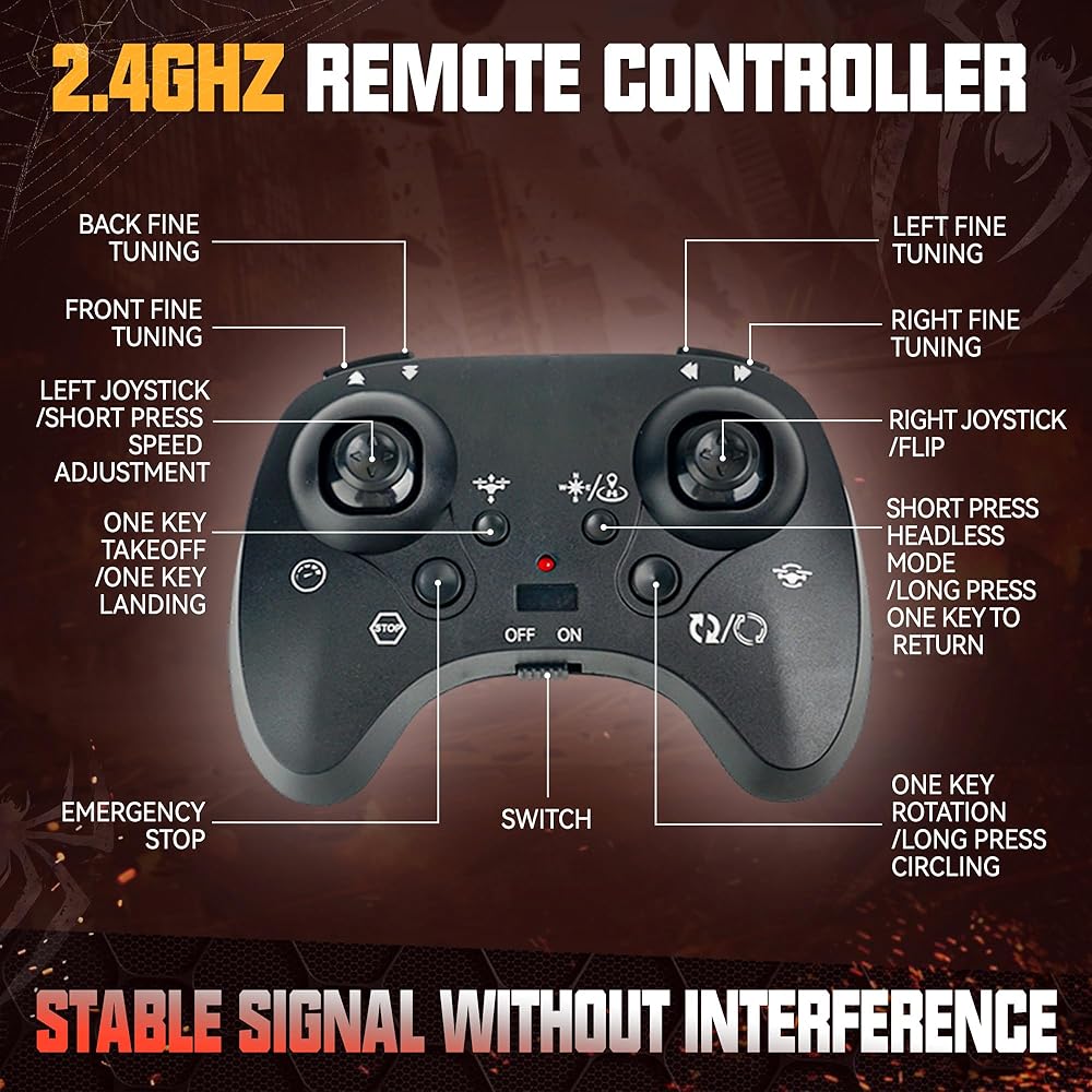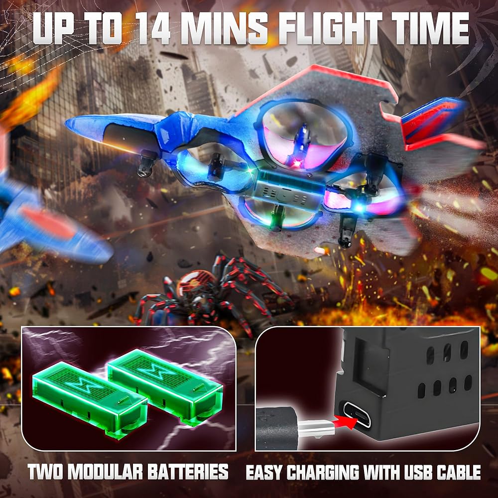 حركات مثيرة وجوية بزاوية 360 درجة: اصطحب طائرتك التي تعمل بالتحكم عن بعد إلى آفاق جديدة مع تقلبات بزاوية 360 درجة وحركات جوية مذهلة. مثالية للطائرات بدون طيار للأطفال وعشاق طائرات التحكم عن بعد، هذه الميزة تحول تجربة الطيران الخاصة بك إلى عرض مثير للمناورات البهلوانية، مما يجعلها الاختيار الأفضل بين ألعاب العنكبوت للأعمار من 8 إلى 13 عامًا.
