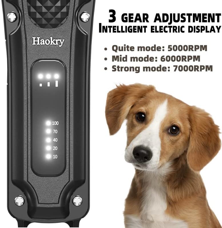 دقة الشحذ الذاتي والشفرة الآمنة: تظل الشفرات المصنوعة من الفولاذ المقاوم للصدأ ذاتية الشحذ حادة من أجل الحلاقة الناعمة التي تخلق قصًا خاليًا من العوائق وتجربة ممتعة لمحبوبتك. شفرات مقاومة للانسداد على شكل حرف R ستجعل حيواناتك الأليفة أكثر أمانًا. الجودة الاحترافية في المنزل تعني رحلات أقل إلى مصفف الكلاب المحترف، وفي الوقت نفسه، فإن ماكينة حلاقة الحيوانات الأليفة هذه مناسبة أيضًا لخبراء تجميل الحيوانات الأليفة المحترفين. ماكينة الحلاقة عالية الطاقة تجعل عملك أكثر كفاءة.