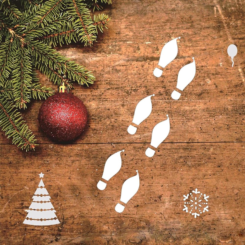 Santa Footprints Christmas Santa Footprint Stencils Xmas Hollow Out Snowflake Elf Footprint Painting Stencils for Wood Sign Window Wall Floor Holiday Xmas Decorations DIY Craf