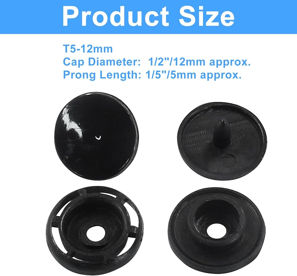 Quality: Made of premium plastic material, the T5 plastic snaps are solid, sturdy and wear-resistant.