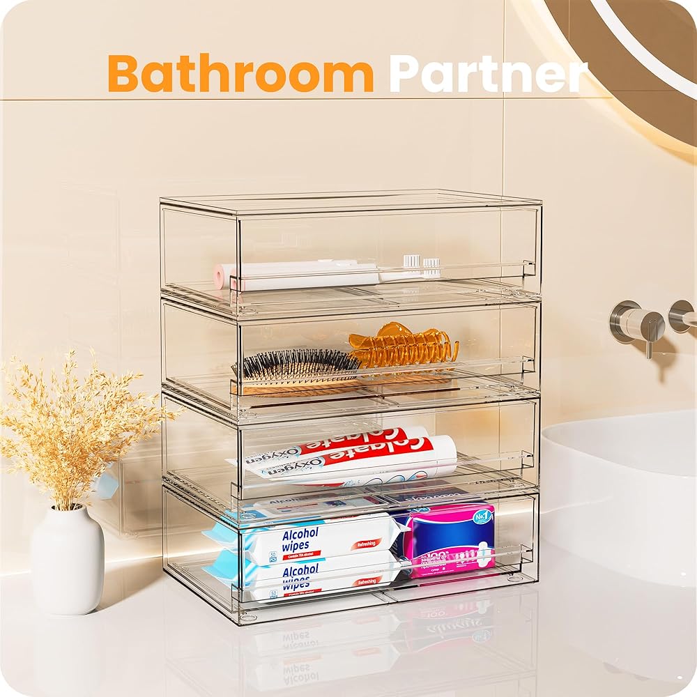 [حافظ على منزلك منظمًا] تساعدك صناديق التنظيم المصنوعة من الأكريليك على تنظيم منزلك بأناقة. فهي واضحة، مما يساعدك على التعرف على المحتويات بسهولة. احتفظ بالأشياء الموجودة في مكانها ومنظمة وخالية من الغبار واخلق مساحة أنيقة في الحمامات أو الغسيل أو غرف النوم أو المكاتب أو المرائج أو غرف الألعاب أو غرف الحرف اليدوية أو غرف اللعب أو الثلاجة أو الخزانات أو أرفف المؤن.