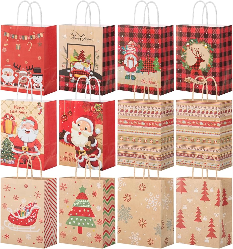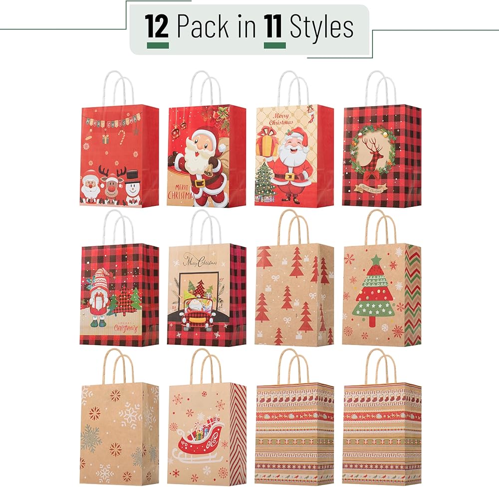 السيد Pen- أكياس هدايا عيد الميلاد بمقابض، 12 عبوة، 8.8 بوصة × 10.6 بوصة، 11 نمطًا، أكياس ورق عيد الميلاد، حقائب عيد الميلاد للهدايا، أكياس هدايا العطلات، حقيبة هدايا عيد الميلاد، حقيبة عيد الميلاد، أكياس هدايا عيد الميلاد