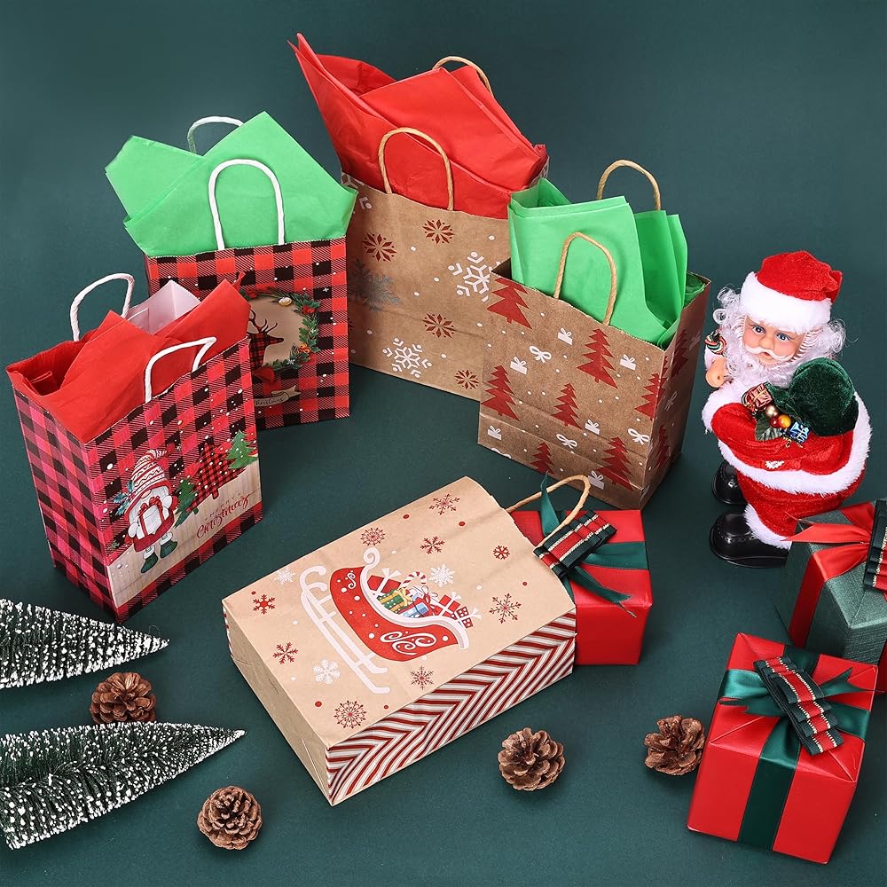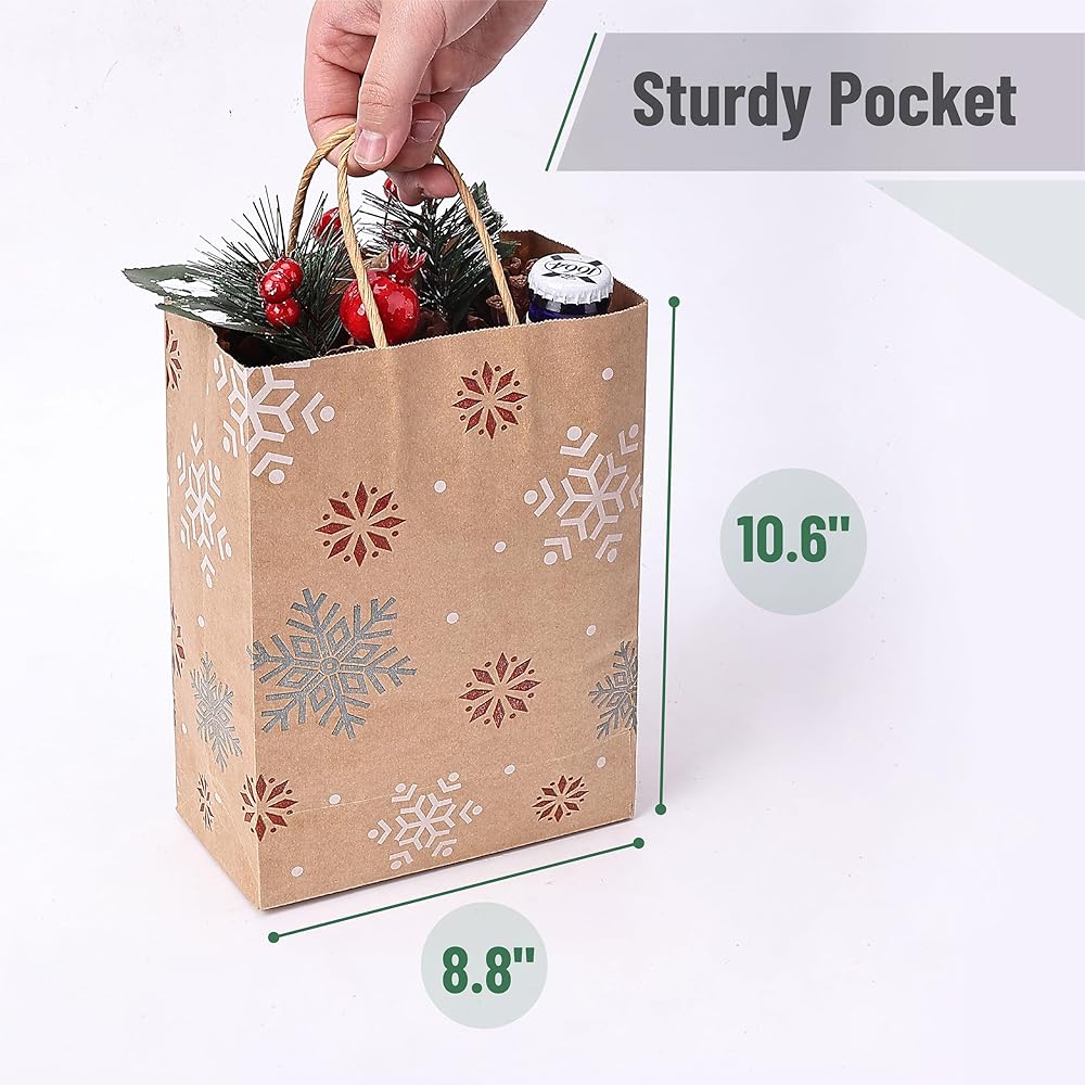 Each bag is generously sized at 8.8" x 10.6", making them versatile for a myriad of gifts, ranging from books and toys to festive clothing and gourmet treats.