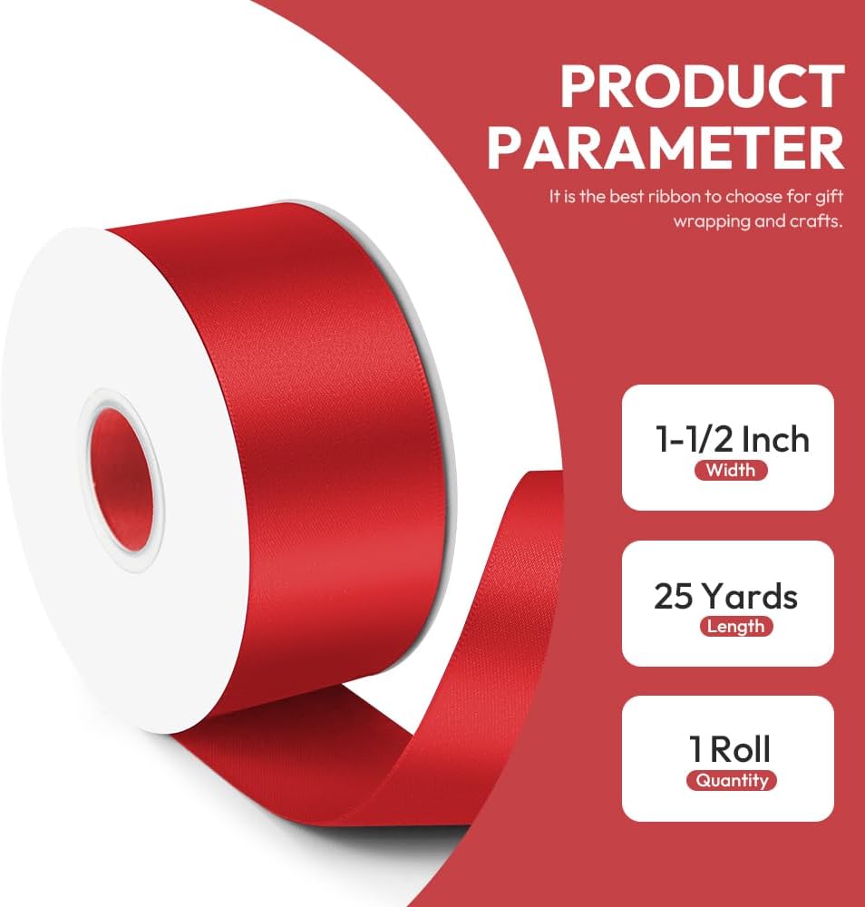 【الحجم】شريط أحمر مزدوج الوجه عالي الجودة يبلغ عرضه 3.81 سم ويأتي في لفة بطول 25 ياردة، مما يوفر مادة وافرة لجميع مشروعاتك الإبداعية. تضيف البكرة المدمجة الراحة، مما يجعل من السهل التعامل معها وتخزينها.