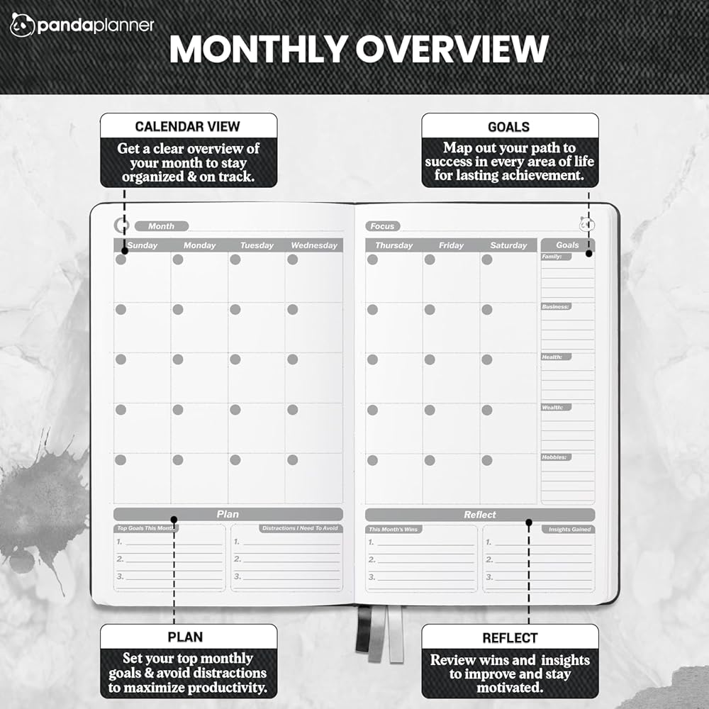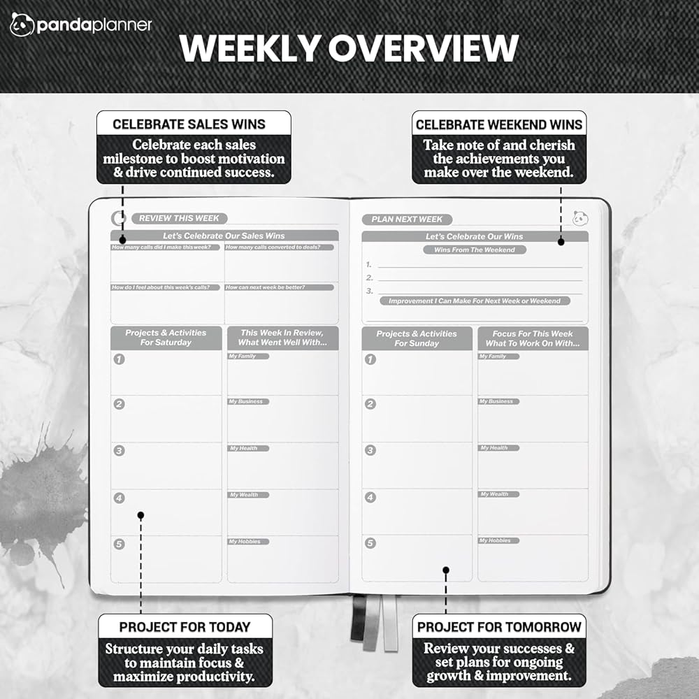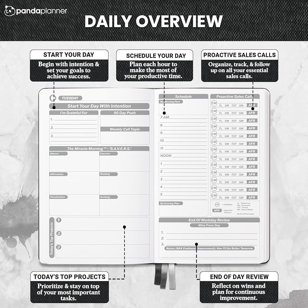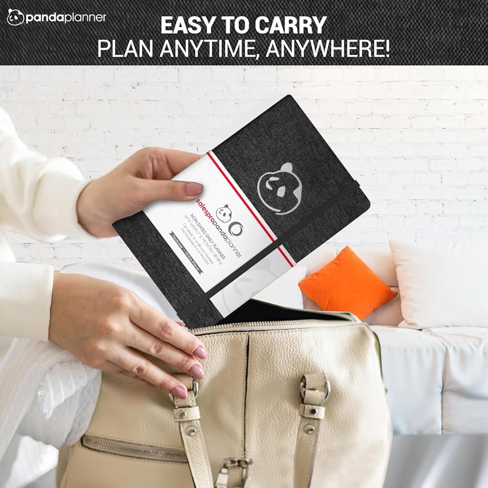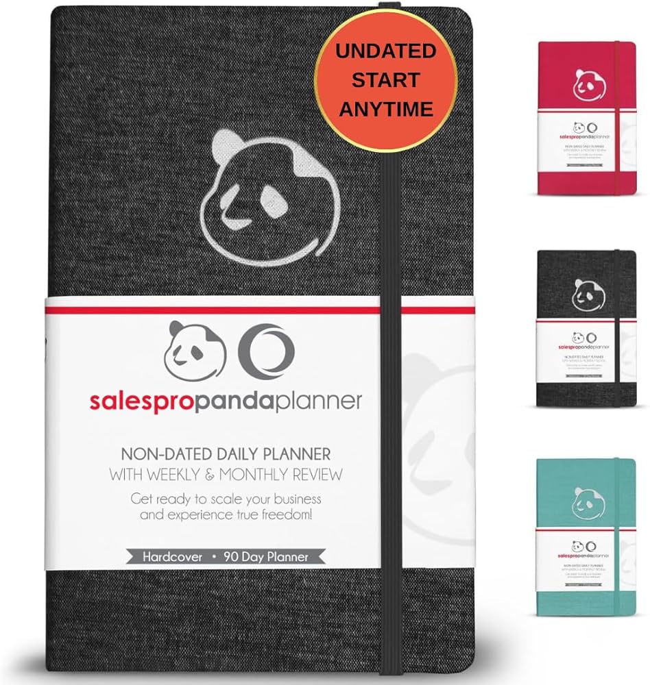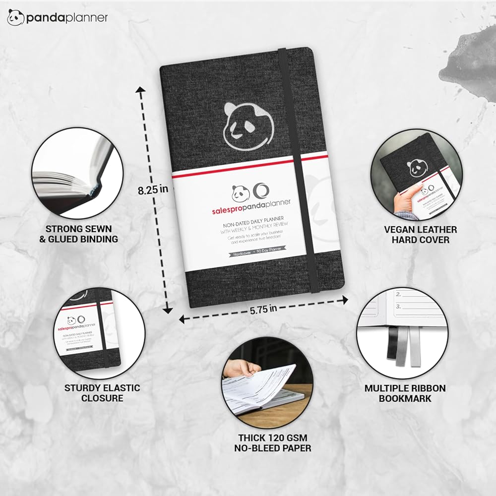 مخطط الباندا مخطط Salespro اليومي غير المؤرخ مع تخطيطات يومية أسبوعية وشهرية - مجلة المبيعات والإنتاجية لمدة 90 يومًا لتحديد الأهداف وتتبعها - غطاء من القماش الناعم مقاس 5.75 بوصة × 8.25 بوصة (أسود)