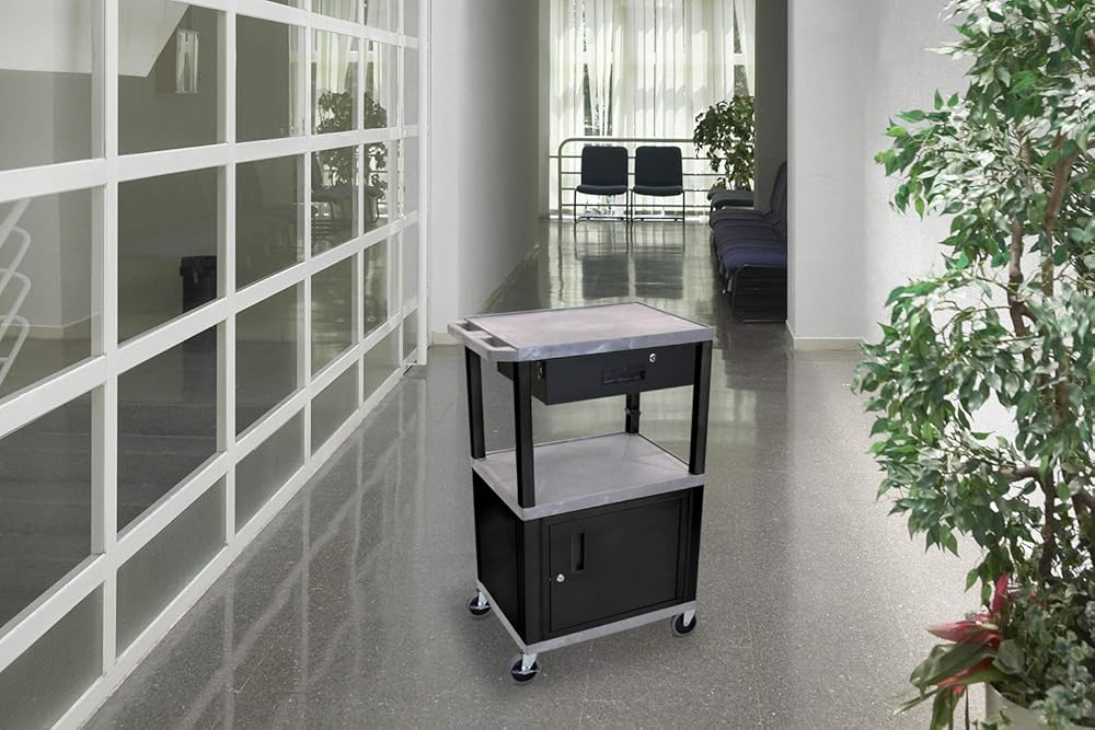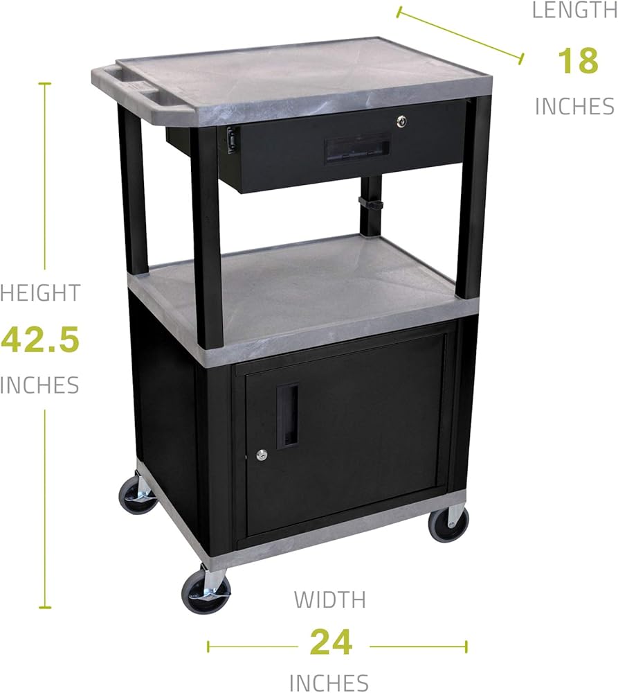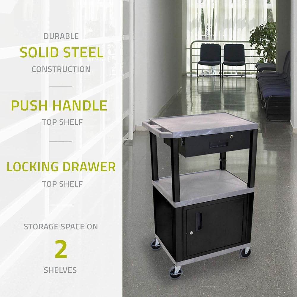 عربة أدوات متعددة الأغراض مثالية للاستخدام مع معدات الصوت/الفيديو والمزيد. مصنوعة من أرفف بلاستيكية مصبوبة معاد تدويرها والتي لن تتشقق أو تتشوه أو تخدش أو تصدأ أو تتقشر