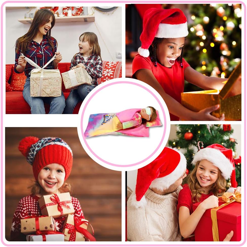 تتضمن العبوة 6 قطع من مجموعة النوم: 1 * بيجامة يونيكورن، 1 * كيس نوم، 1 * وسادة، 1 * قناع عين للدمية، 1 * قناع عين للأطفال، 1 * حزام خصر