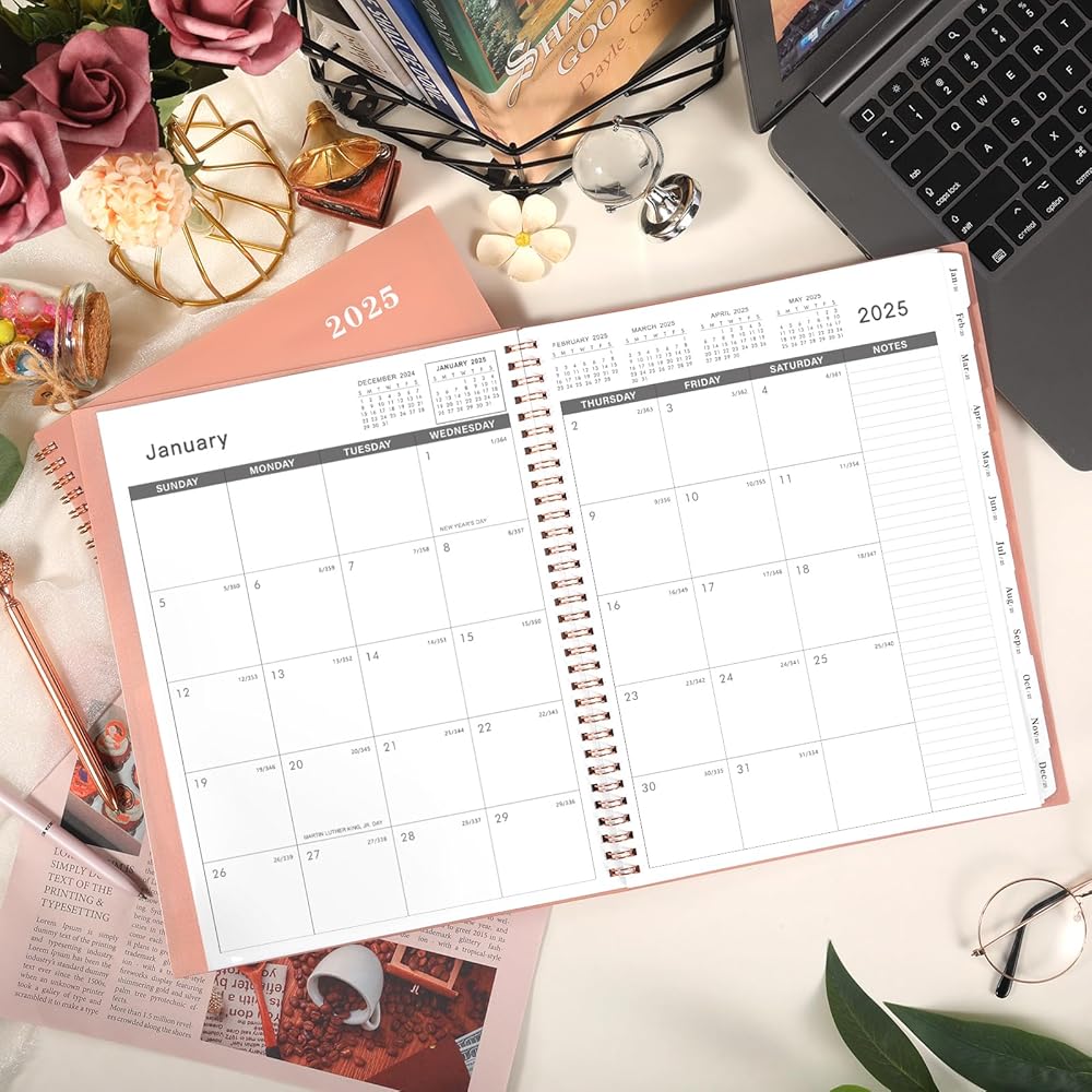 🌷 نظرة عامة شهرية - يغطي كل شهر من مخطط الـ 12 شهرًا 2025 صفحتين كاملتين وهو أمر رائع للتخطيط طويل المدى. كما أن المكعبات اليومية المسطرة مقاس 1.9 × 1.8 بوصة للجدولة المفتوحة وتوفر مساحة واسعة لتخطيطك اليومي لكل شهر. الأشهر الستة من التقويمات المرجعية الشهرية السابقة والقادمة وفواصل علامات التبويب طويلة الأمد لتسهيل التخطيط والتتبع على مدار العام.