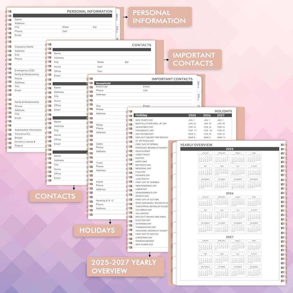 🌷 تحسين كفاءة الحياة - يعد هذا المخطط الشهري المتكامل لعام 2025 المزود بالزهور خيارًا رائعًا لتحفيز نفسك على تحقيق أهدافك خطوة بخطوة، وسيحافظ على تنظيم حياتك اليومية وتحسين مهارات إدارة وقتك.