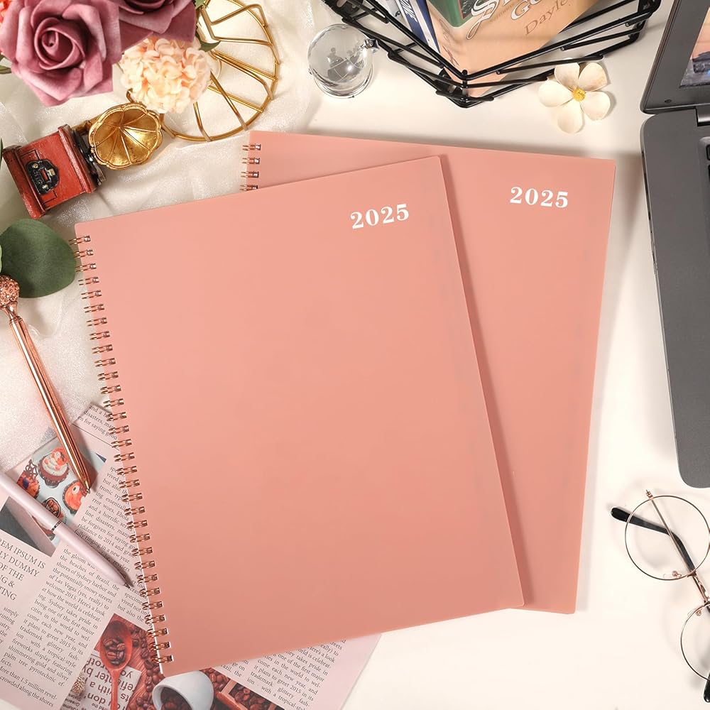 🌷 تصميم احترافي - سلك معدني قوي مزدوج يسمح بالطي 360 درجة. غطاء بلاستيكي مرن لحماية الصفحات الداخلية. عروات شهرية مطلية وجيب خلفي لتخزين أغراضك المتناثرة، مثل البطاقات.