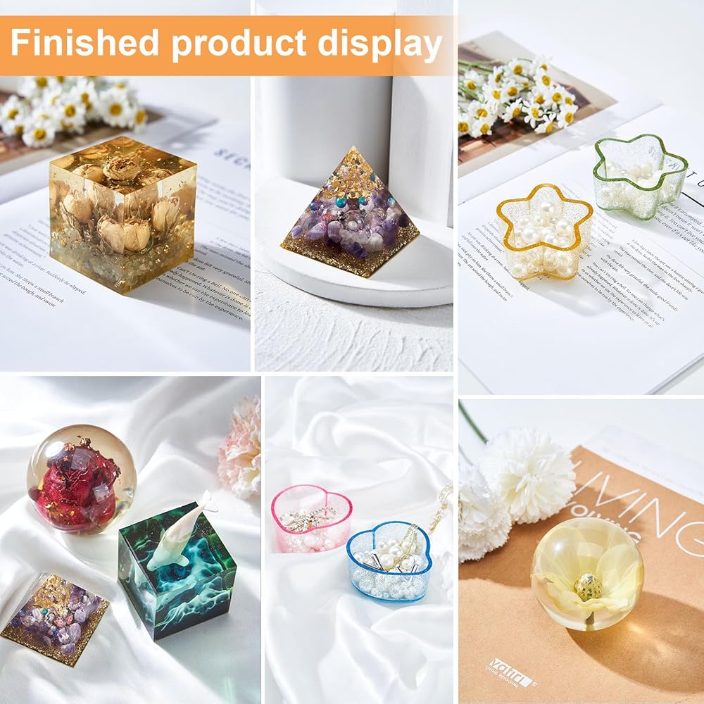 قوالب راتنجات الإيبوكسي، تصفية السيليكون، مجموعة كاملة من راتنجات الإيبوكسي وقوالب 17.4 أونصة، بما في ذلك قوالب هرمية-مكعب كروي-قلب-نجمة، لصب الراتنج للمبتدئين