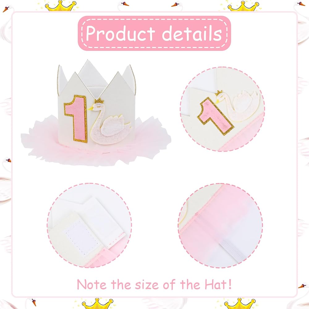 Package Included: You will get a birthday hat with “1” printed on it and a swan printed on it, which will make your life more interesting. The size of this swan 1st birthday hat is approximately 3.46*3.11 inches, which is suitable for your baby's hat.