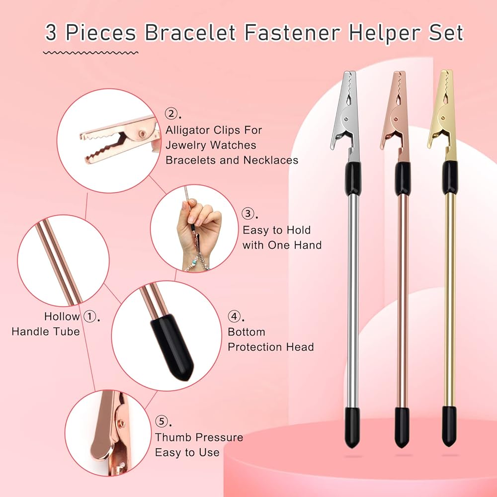 3 قطع من أدوات مساعد السوار، مساعد تثبيت سوار اليد Anglecai للتثبيت والربط، سوار وقلادة ومشابك وربطات وسحابات