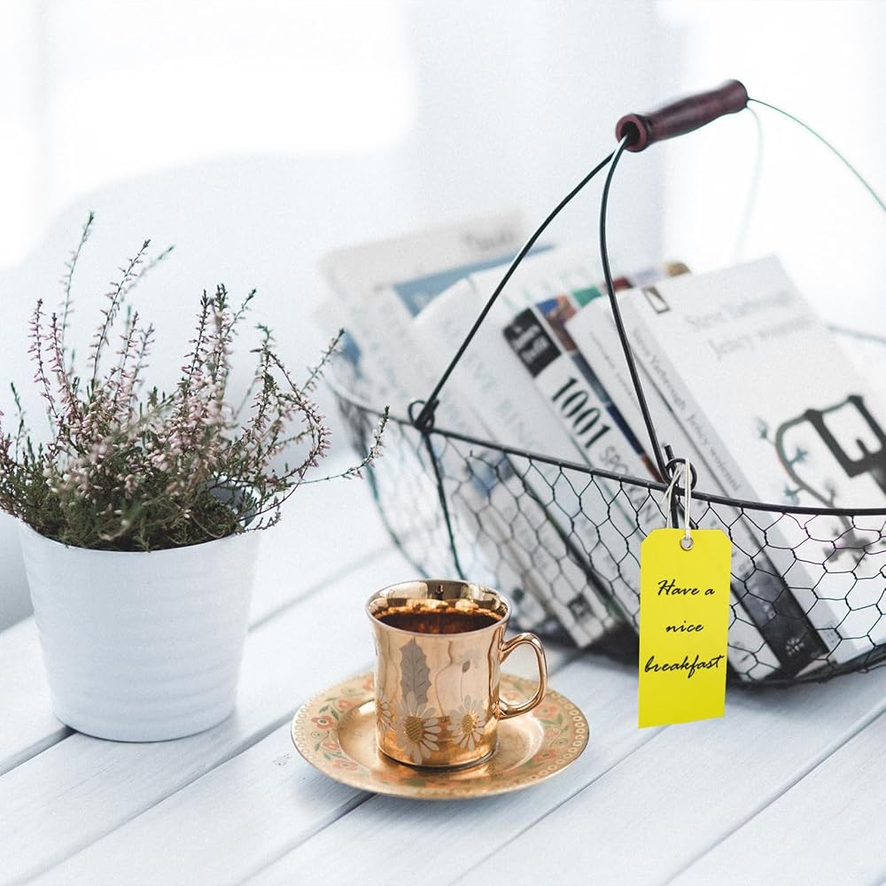 Easy to Write and Hang: These blank tags with wire have a flat, smooth surface, giving you plenty of room to write prices, names, numbers or other information on them, giving you a smooth writing experience. Each tag has a hole at the top where you can run the supplied string through to hang it where you like, making it simple and easy to use and leaving you with a great experience.