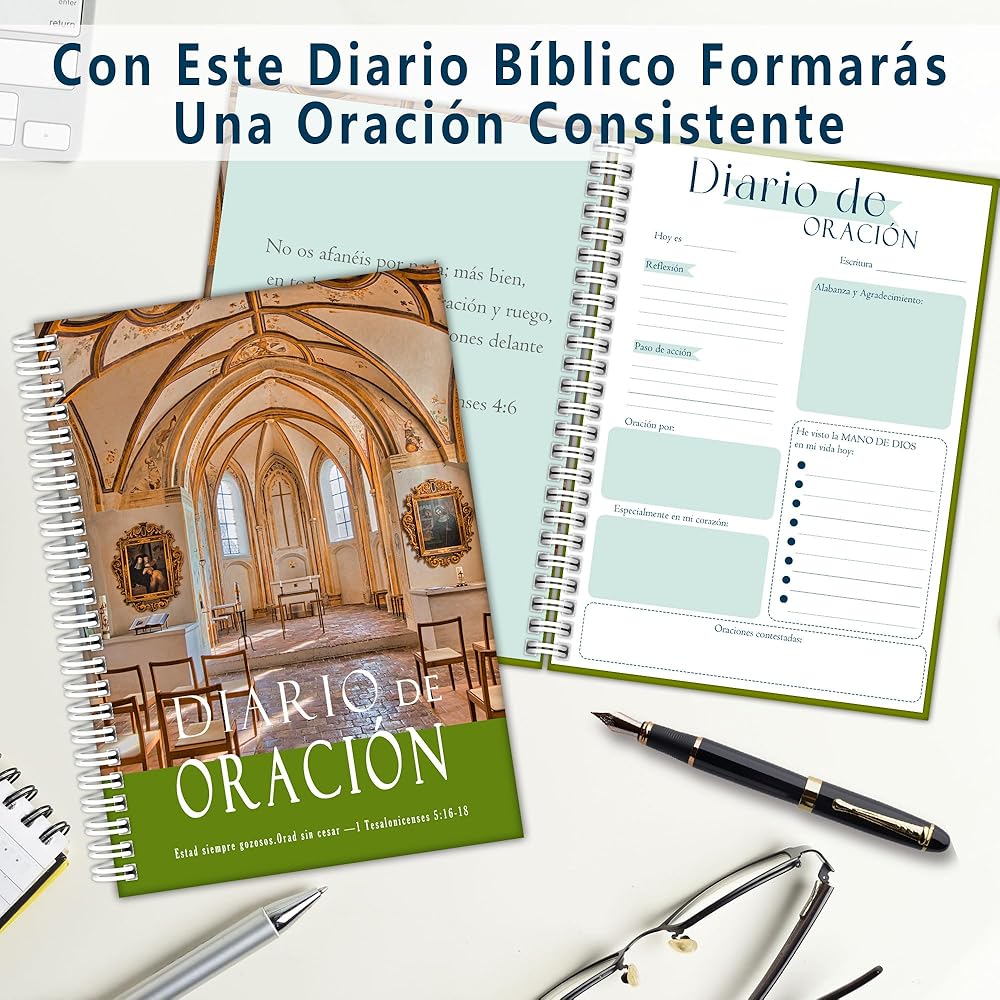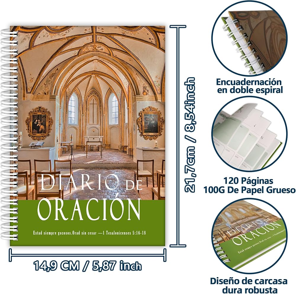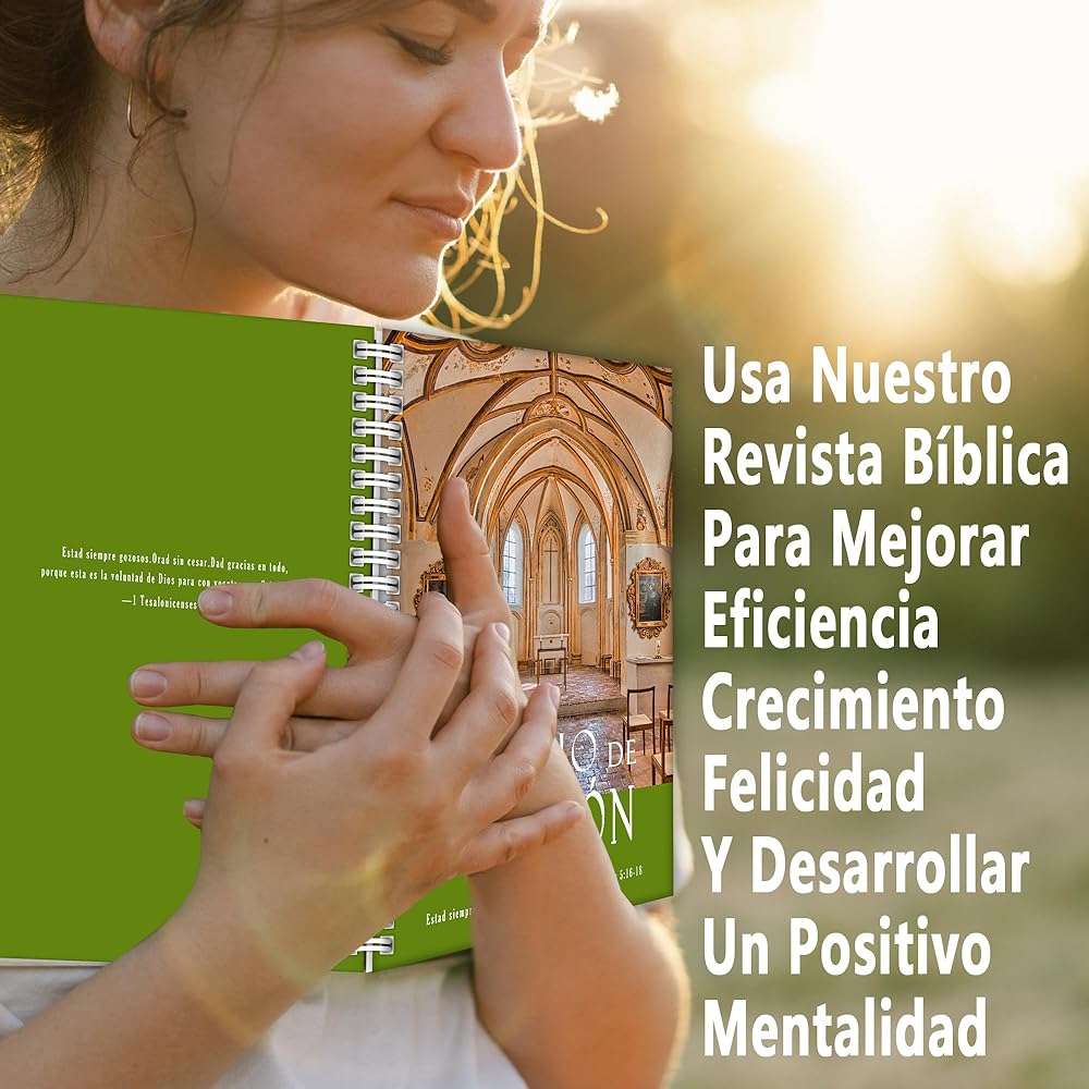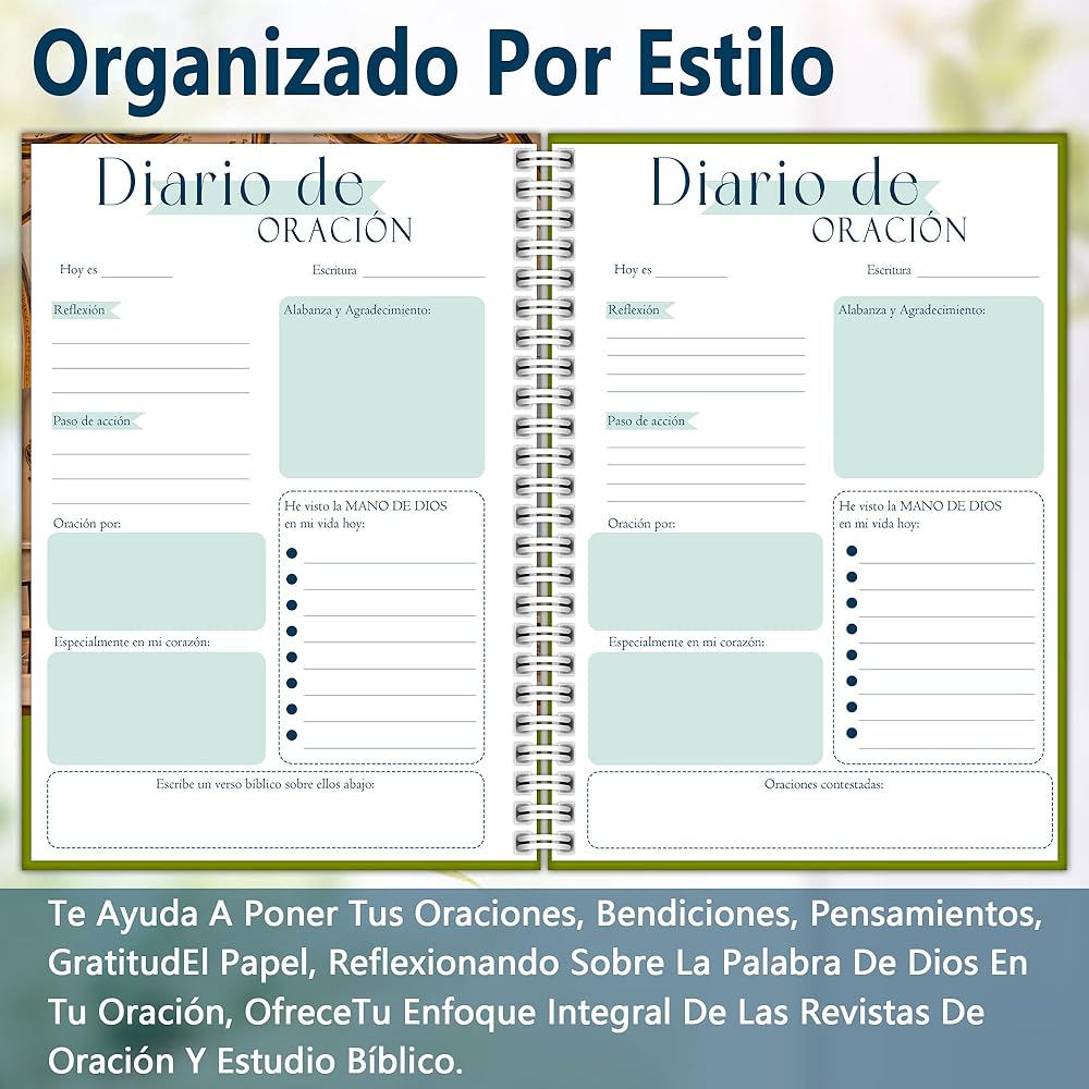 مجلة صلاة الكتاب المقدس الإسبانية الحلزونية، Diario bíblico de oración encuadernado en espiral 128 صفحة مجلة مسيحية يومية ممارسة الامتنان، مجلة دراسة الكتاب المقدس لتدوين الملاحظات، هدية مسيحية