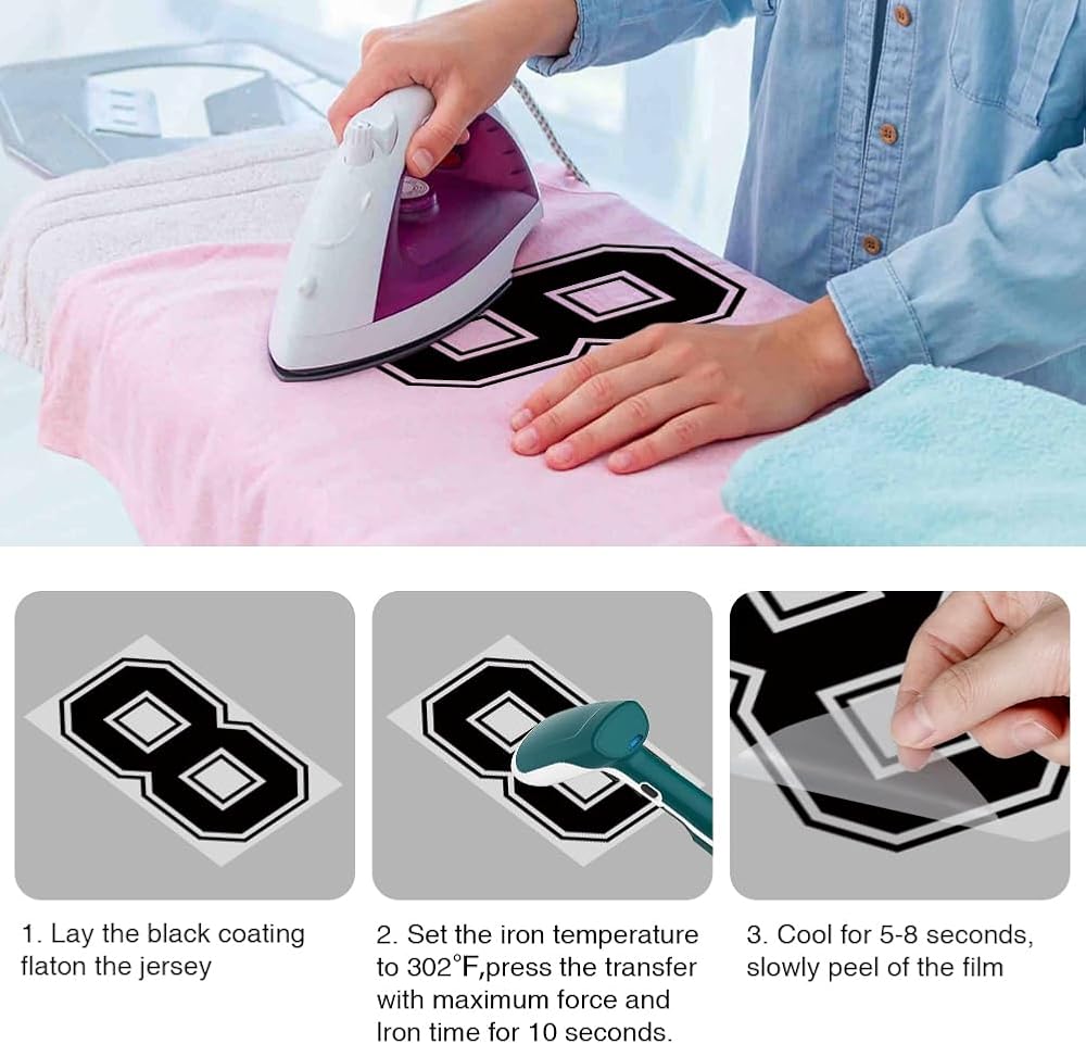 [High-quality materials] Our jersey heat transfer numbers use high-quality raw materials. The numbers are attached to the PET plastic film, and the back uses premium hot melt adhesive. When used, the hot melt adhesive will be heated by the iron or heat transfer machine and it will melt and allow the number to stick to the garment.