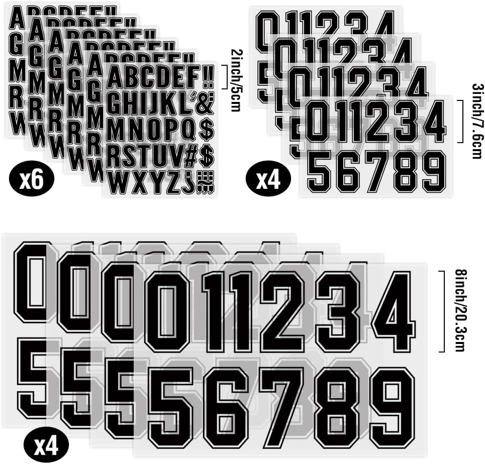 Extra Quantity heat transfer numbers and letters set, suitable for team clothing heat transfer and personal DIY heat transfer works
