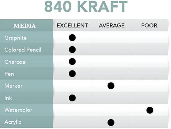 Borden and Riley #840 Kraft paper hardcover sketch book, side spiral, 6" X 9", 60 lb. , 40 sheets, features 60 lb. Heavyweight paper. It is an economical, all-purpose option with a rough finish. Ideal for temporary drawings and bold sketches. Archival quality. Made in USA.