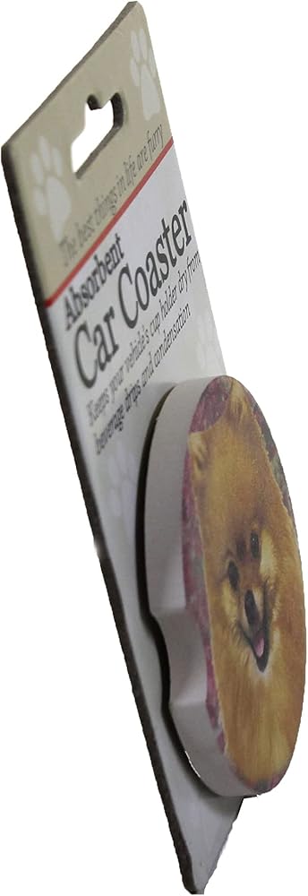 Pomeranian Gift- Pomeranian Car Coaster, made from super absorbent sandstone material to protect your vehicle from beverage spills and condensation with easy to take out notch!