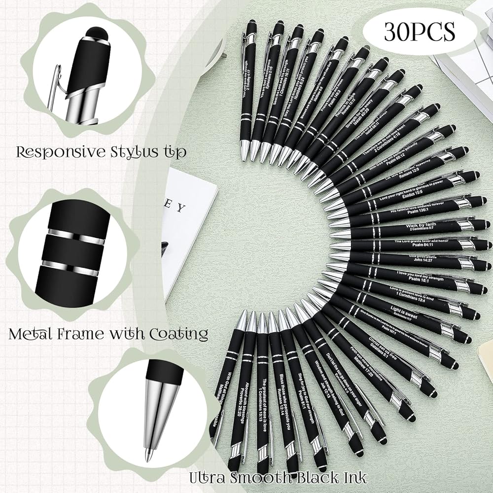 • مناسبة لكتابتك: تتميز أقلام الكتابة من الكتاب المقدس بحجم مناسب وسطح أملس، ويسهل عليك حملها باليد؛ حبرها موثوق، ولا يخترق بسهولة، مما سيمنحك تجربة كتابة جيدة