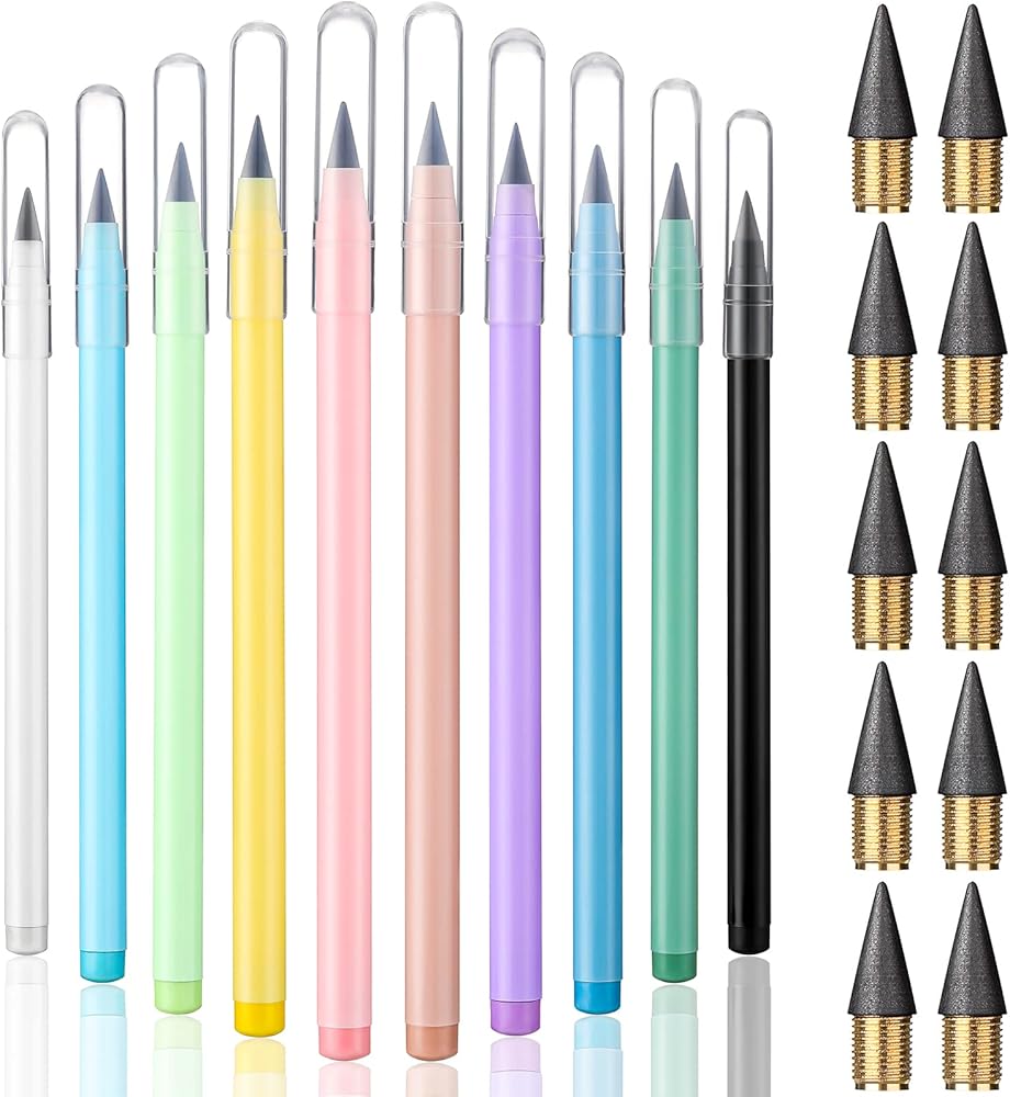 • More Colors to Choose: the package comes with 10 pieces of everlasting pencils with eraser in 10 colors and 10 pieces replacement nibs, offering your children more colors to choose from, each everlasting pencil has beautiful appearance, will attract and motivate their interest in writing and studying