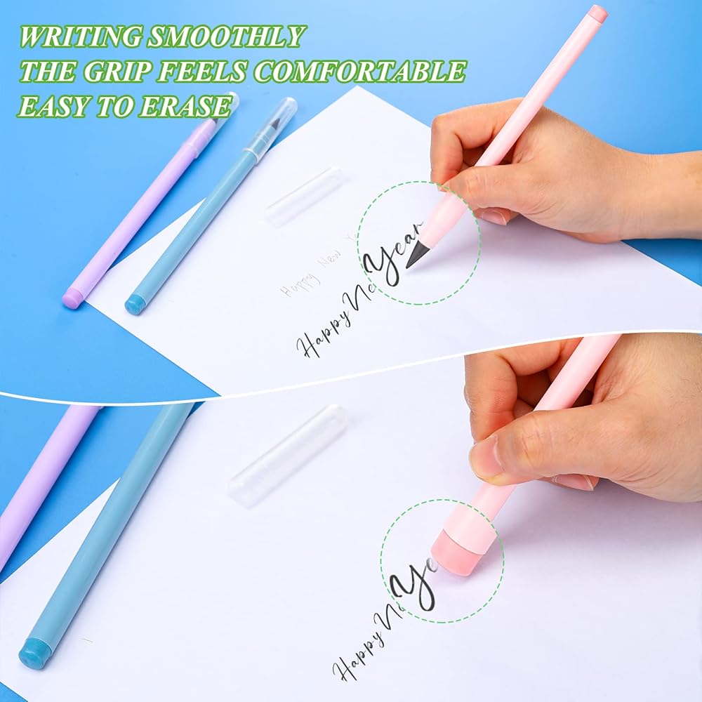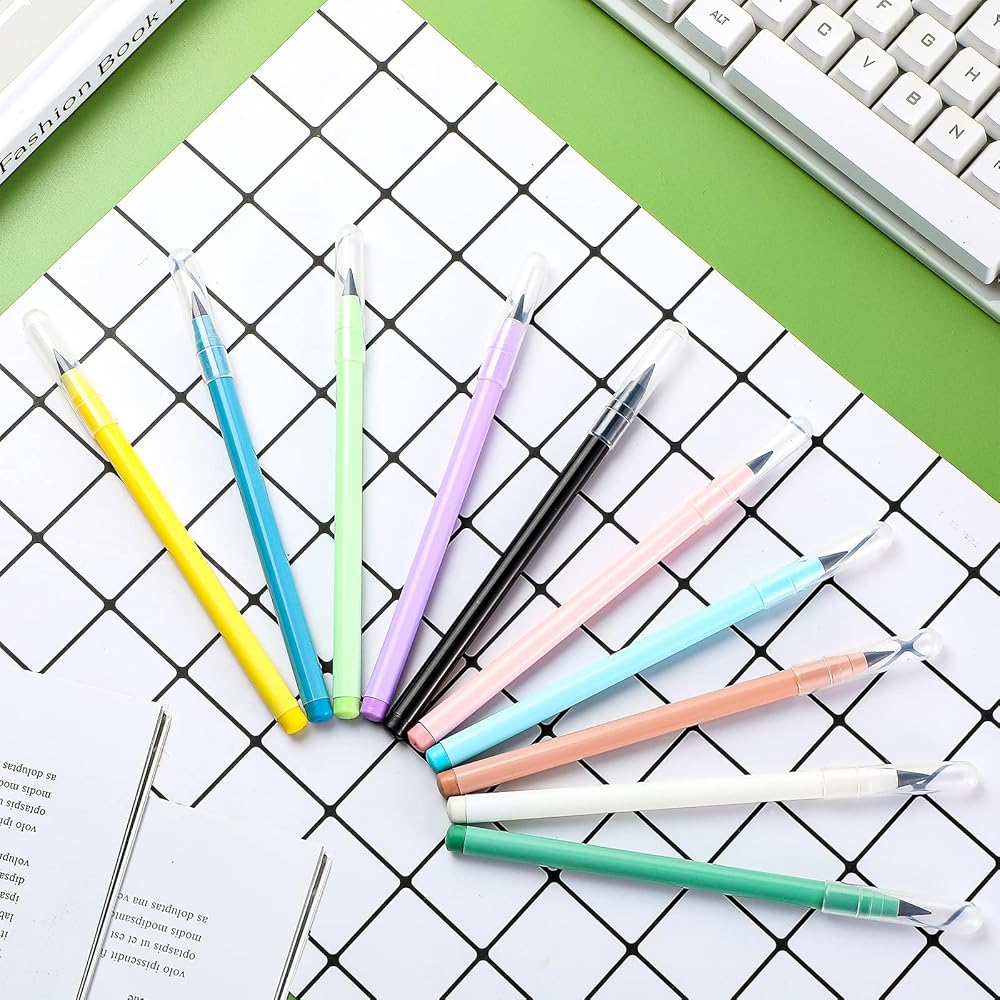 10 قطع قلم رصاص دائم بدون حبر مع ممحاة قلم رصاص قابل لإعادة الاستخدام مع طرف بديل للأطفال للكتابة والرسم والصياغة واللوازم المدرسية للمكتب المنزلي (لون زاهي)
