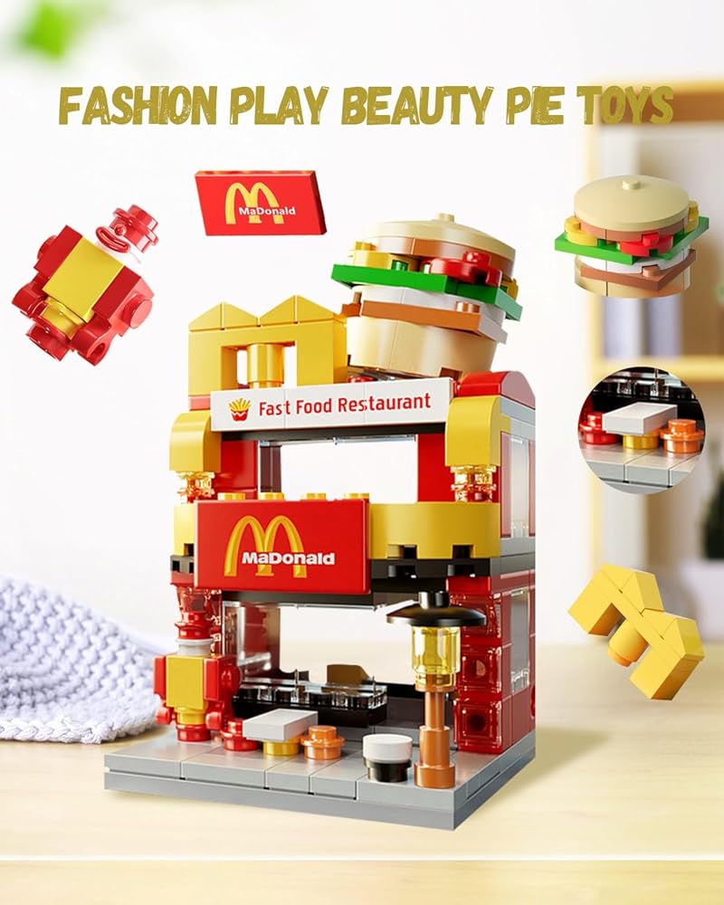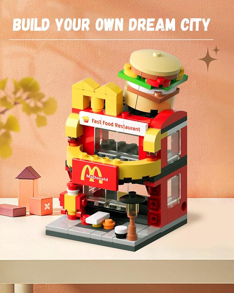 LITTCO مكعبات بناء سيتي برجر هاوس، هدايا عيد ميلاد للبالغين والأطفال، مجموعة ألعاب ماكدونالدز 167 قطعة