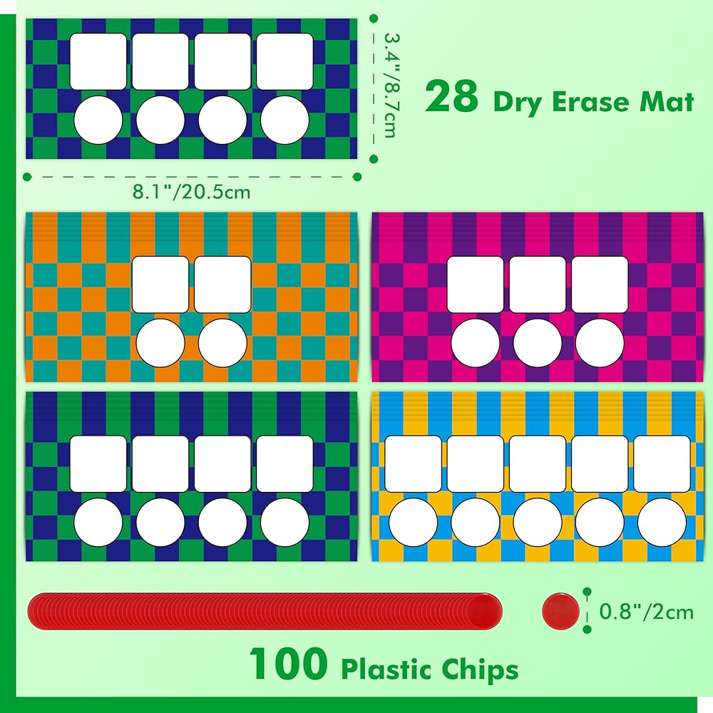 حزمة قيمة: تأتي مع 28 سجادة صندوق صوت، و100 شريحة بلاستيكية و1 قلم مسح جاف، وكمية كافية لتلبية استخداماتك المختلفة. مناسبة لعدة أطفال أو مجموعات تستخدم في وقت واحد.