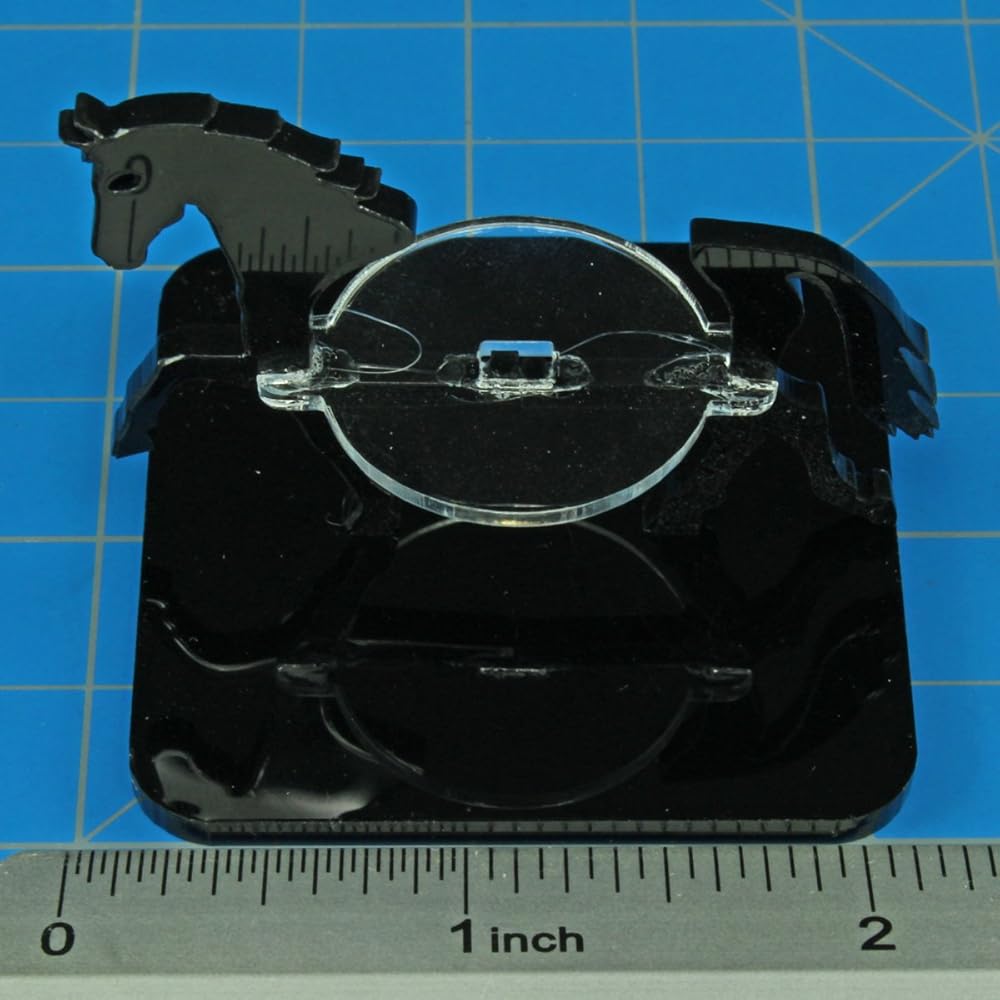 تم تصميم حامل شخصية الحصان لقواعد مستديرة الشكل مقاس 30 مم (1.25 بوصة). ضع الشكل على حامل العلامة الشفاف وحركهما معًا. يجلس على قاعدة سوداء.