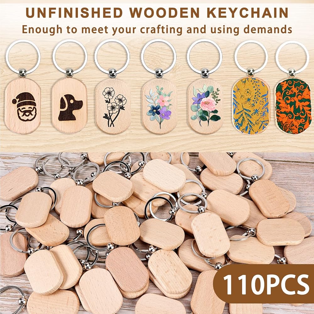 110 قطعة من سلاسل المفاتيح الخشبية الفارغة: سوف تحصل على 110 قطعة من سلاسل المفاتيح الفارغة على شكل ملعب. كمية كافية لتلبية الاحتياجات المختلفة، يمكنك استخدام خيالك وإبداعك لصنع أنماط مختلفة من سلاسل المفاتيح معهم