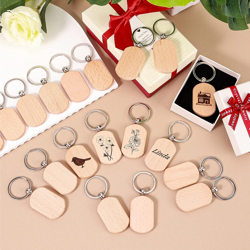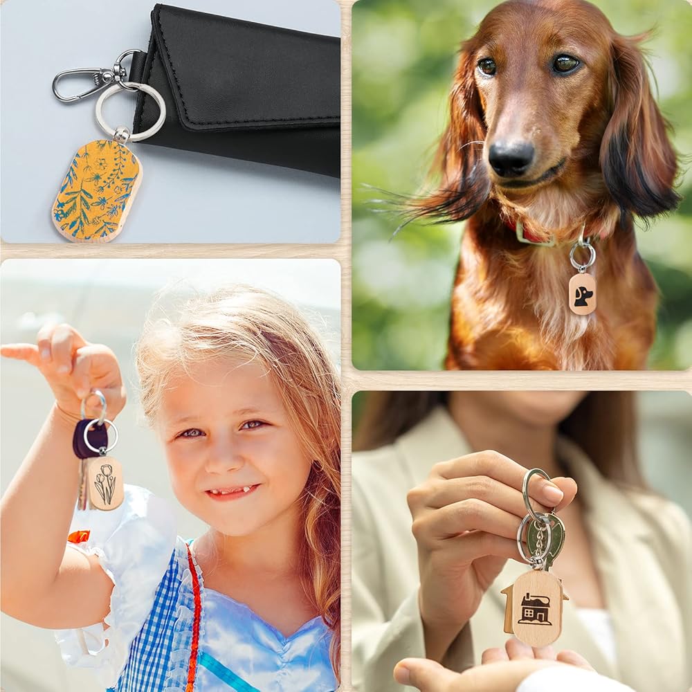هدايا لا تُنسى: يمكن استخدام علامات المفاتيح الخشبية الفارغة هذه في سلاسل المفاتيح، وبطاقات الحيوانات الأليفة، وبطاقات الهدايا، وبطاقات الأمتعة، وبطاقات الأسماء، وتزيين الحقائب، وما إلى ذلك. بفضل تصميمك الدقيق، يمكن أيضًا أن تكون هدية لا تُنسى ومدهشة لعائلتك أو أصدقاء