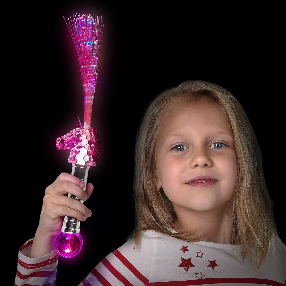 Windy City Novelties Fun Central - عصا لعبة الألياف الضوئية يونيكورن المضيئة بإضاءة LED | لوازم أعياد ميلاد الأطفال الحسية، الرابع من يوليو، الصيف، هدايا الحفلات الحماسية