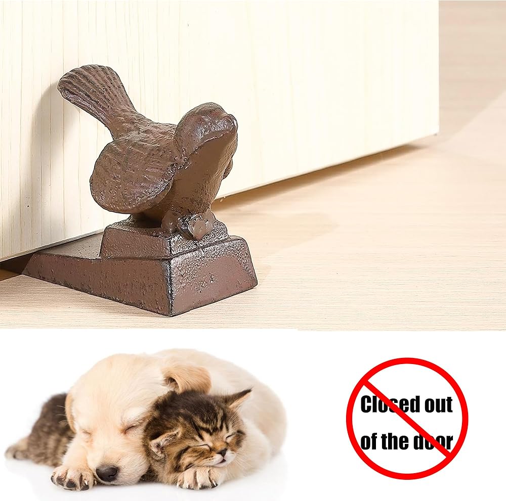حاجز الباب المزخرف: حاجز الباب الفريد على شكل طائر سوف يلفت انتباه الجميع، بما في ذلك قطتك وكلبك. يناسب معظم فتحات الأبواب القياسية. باستخدامه، لن يتم إغلاق حيواناتك الأليفة خارج الأبواب بعد الآن.
