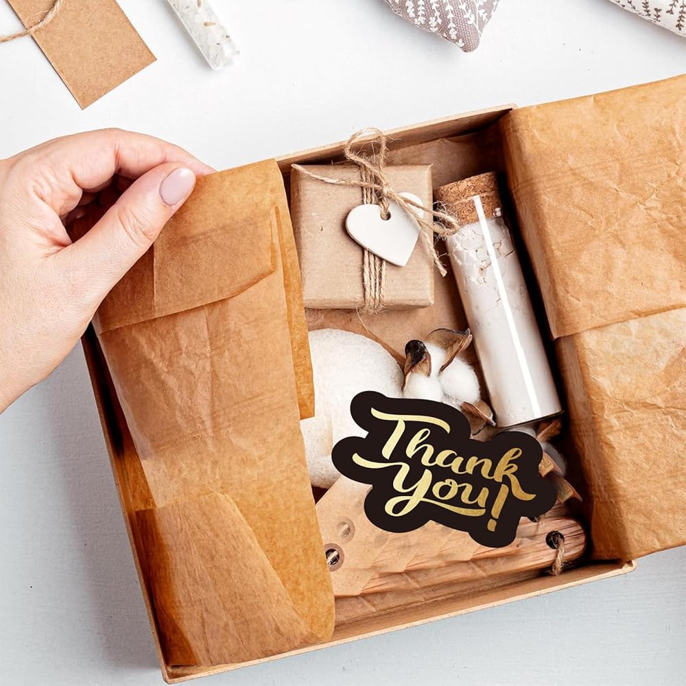 50 قطعة من بطاقات الشكر باللونين الأسود والذهبي، بطاقات شكر أنيقة للأعمال الصغيرة. عزز علامتك التجارية وأظهر تقديرك لجميع أعمالك.