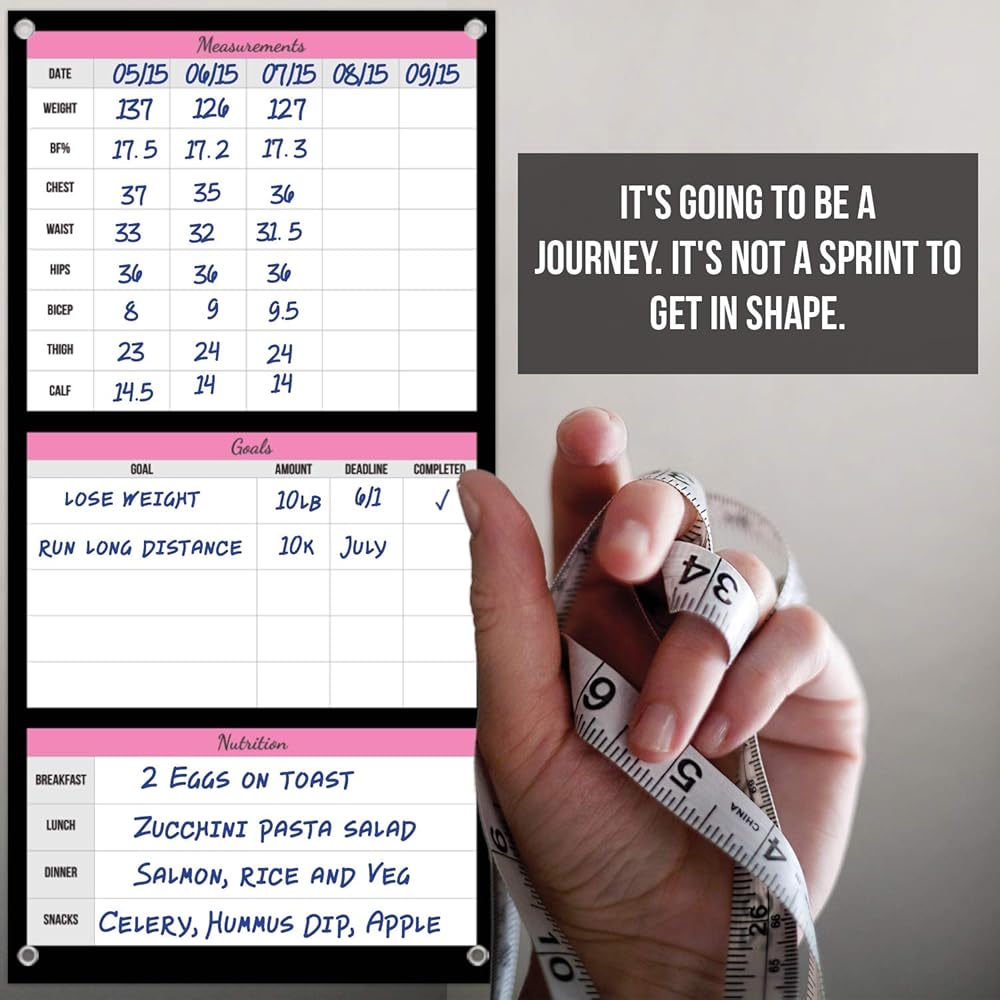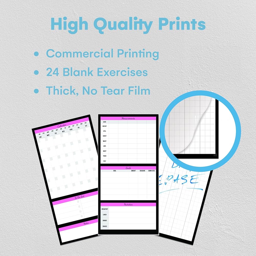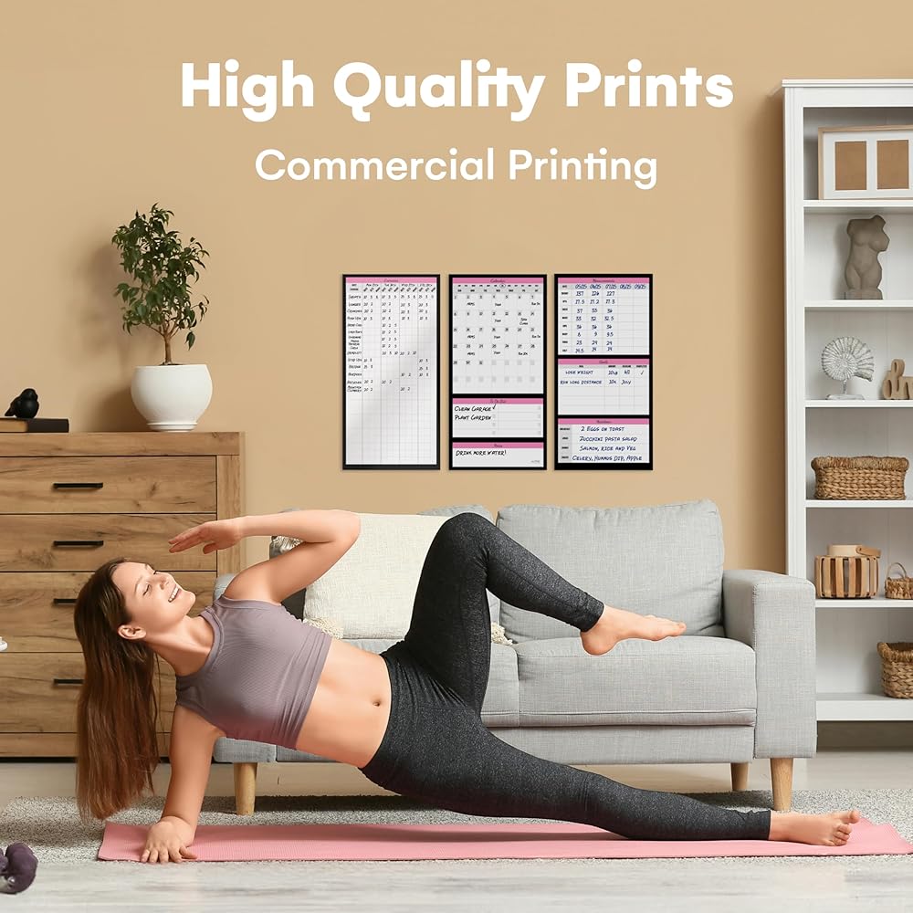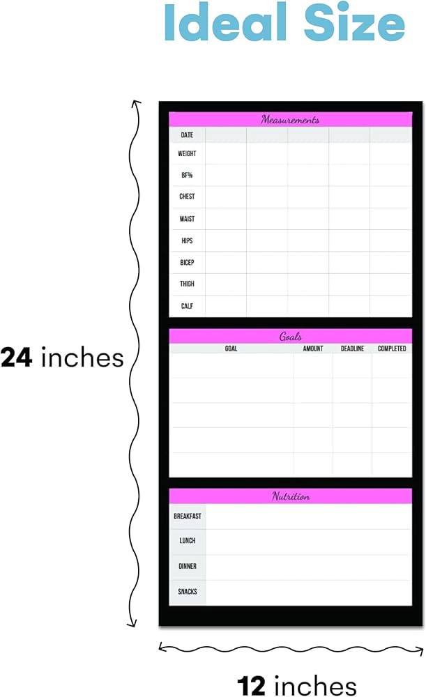 💪 [مخطط اللياقة البدنية] 3 ملصقات لياقة بدنية كبيرة مقاس 12 × 24 بوصة مغلفة بالأشعة فوق البنفسجية لتخطيط أهدافك وتتبعها وقياسها اليوم.
