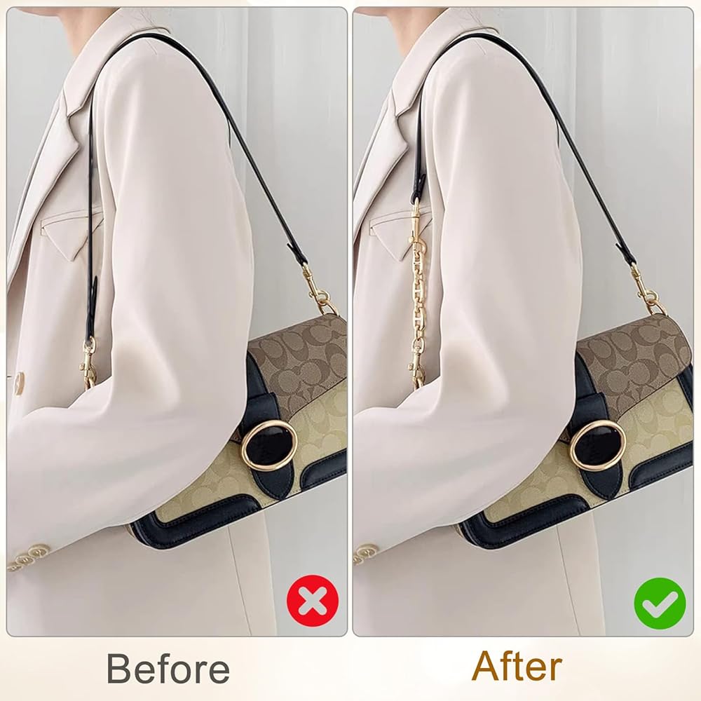 Exquisite Design: The gold metal chain straps are wide enough to be comfortable in hand and on the shoulder. They had the magic to repair old bag straps, enhancing the luxury and grade of the bag, and won't damage the bag, purse extender chains freely extend to a cozy hip position, perfectly solving the lack of "fit" of the original bag strap.