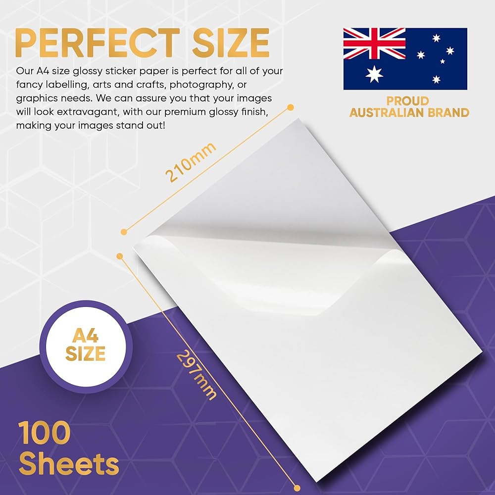 نتائج طباعة ممتازة: تم تصميم ورق الملصقات القابل للطباعة Avarrix خصيصًا لطابعات الليزر. يأتي ورق طباعة الملصقات هذا بحجم A4 ويبلغ سمكه 80 جرامًا للمتر المربع ويمكن فصله بسهولة عن الورقة الخلفية. اللمسة النهائية اللامعة الفائقة تجعلها مثالية لطباعة النصوص والصور.
