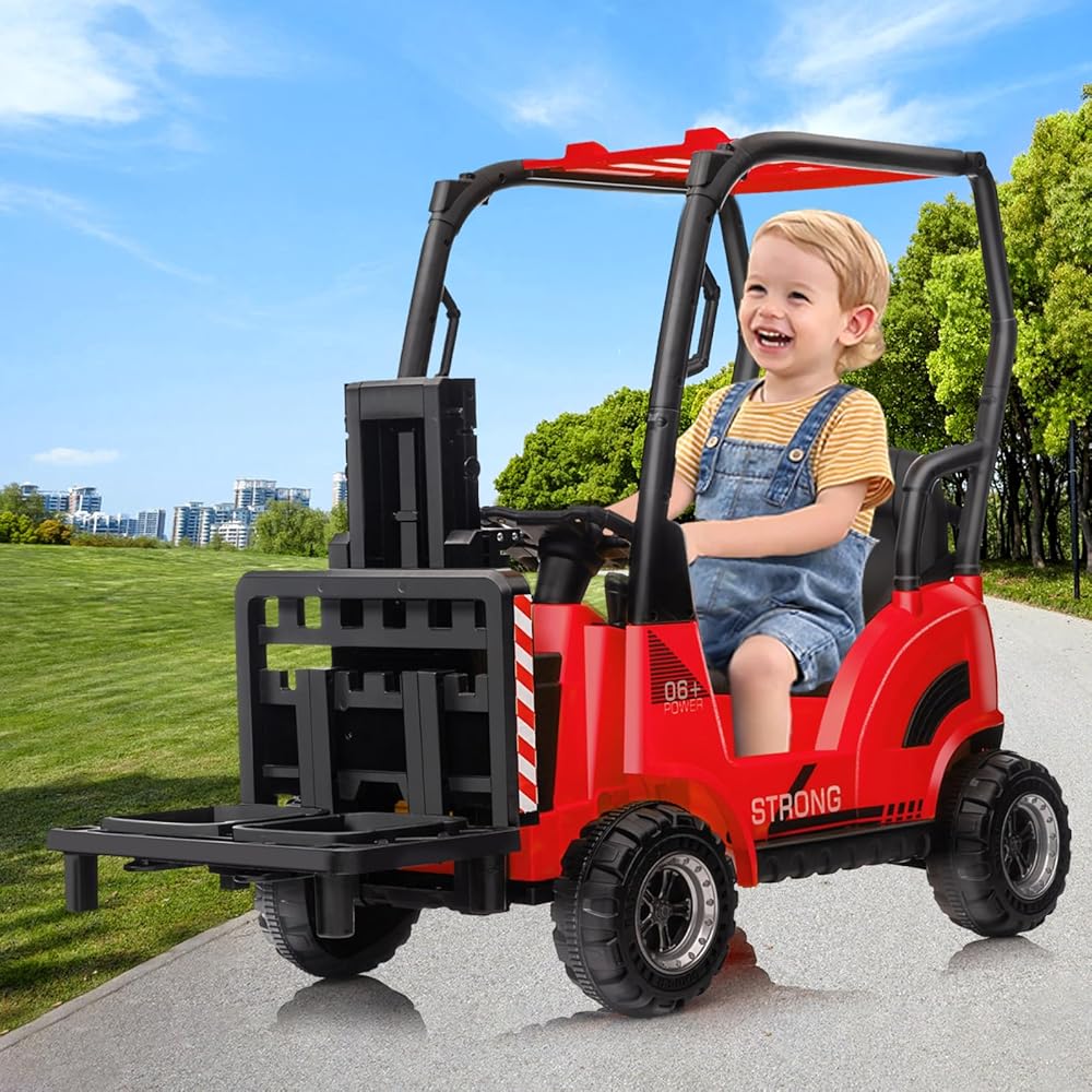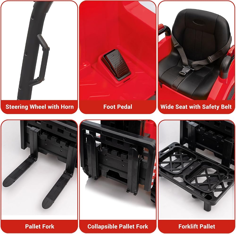 تصميم واقعي: تتميز الرافعة الشوكية الكهربائية 12 فولت بشوكة قابلة للرفع ومنصة قابلة للإزالة، مما يسمح للأطفال بالتحكم في حركة شوكة الذراع من خلال عصا التحكم اليمنى. مع هذه الميزة، يمكن للأطفال الاستمتاع بإحساس كونهم مشغل رافعة شوكية حقيقي، مما يوفر لهم تجربة قيادة نابضة بالحياة وجذابة تثير خيالهم وإبداعهم.