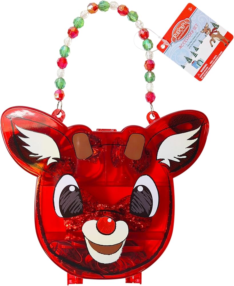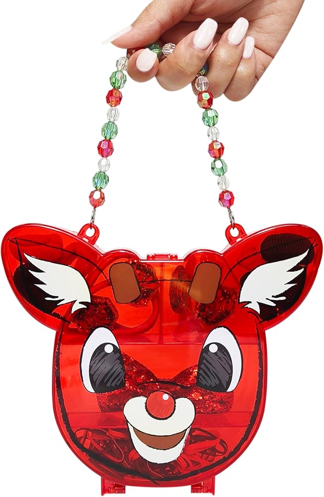 Make the holidays extra special with the Rudolph the Red Nosed Reindeer Hair Accessory Case! Designed for toddlers and young girls, this set includes festive hair clips, elastics and a bow featuring glitter Rudolph charms. Also included are no-tear mini hair elastics and terries for easy and cute hairstyles. With a focus on the iconic Rudolph character, this Christmas hair accessories set is sure to delight fans. The case can also be used as a stylish purse, making this a perfect gift for daughters, sisters, or granddaughters. With a focus on high quality, non-toxic materials and attention to detail, this set is a great choice for birthdays, holidays or special occasions. For ages 3 and up.