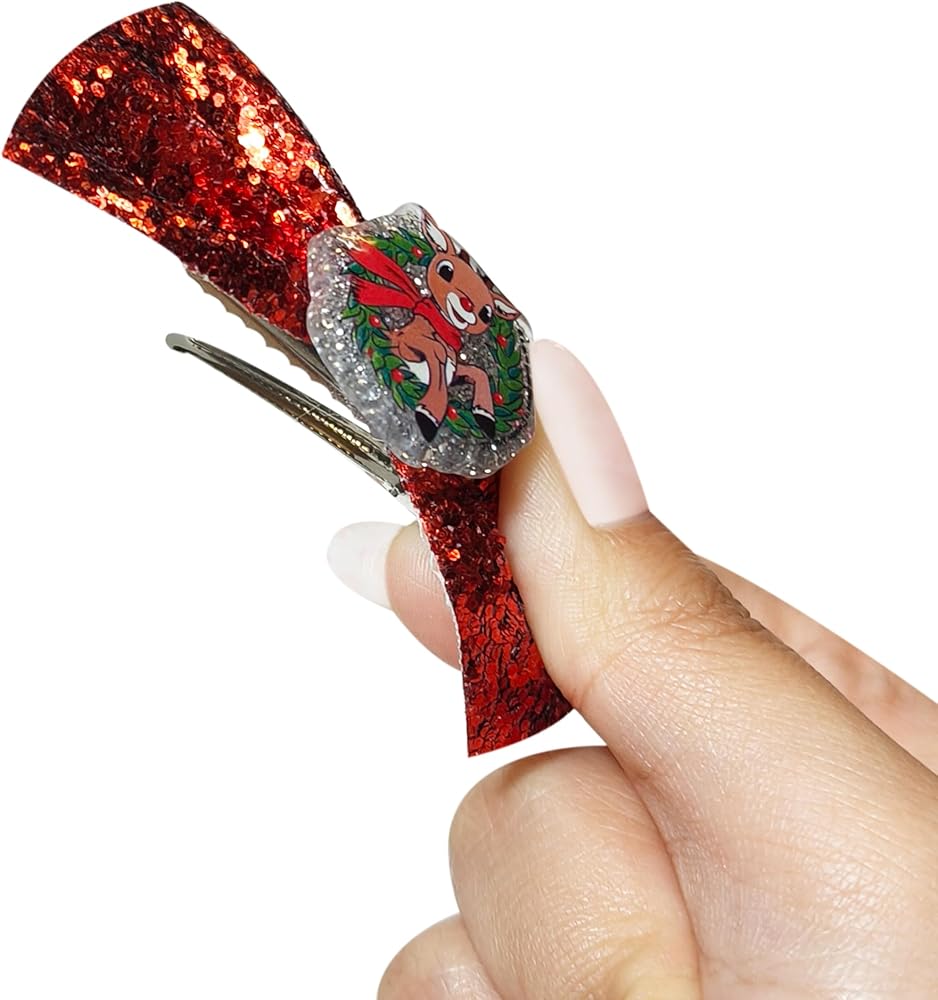 • Hair clips, bow, and elastics feature an acrylic Rudolph charm, sure to delight any fashion-forward fan