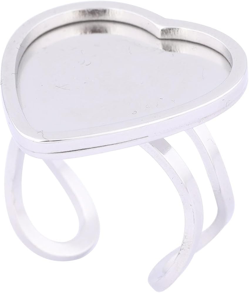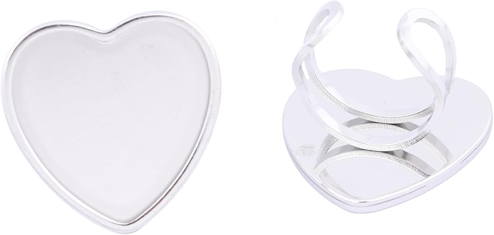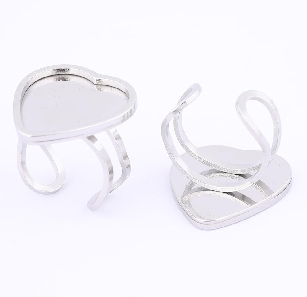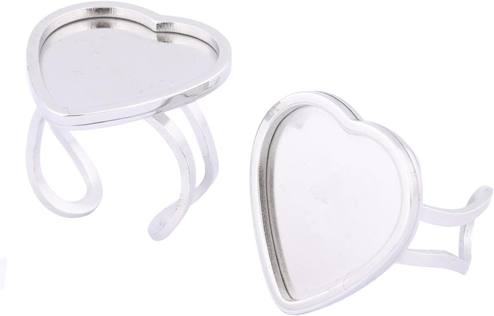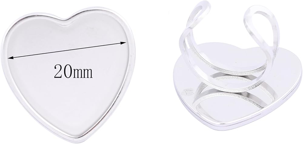 - Size: ring part is about 18mm in idameter, and since it is steel, it is not adjustable; top bezel setting is fitting for 20mm heart cabochon