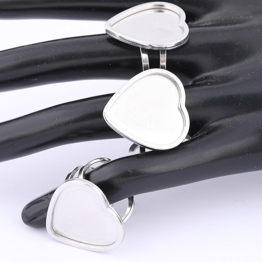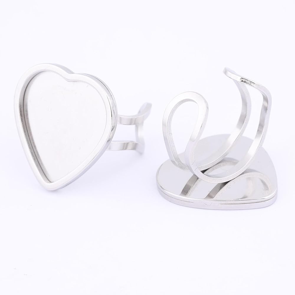 10pcs stainless steel fit 20mm 25mm heart cabochon ring bezel setting blanks diy jewelry making findings
