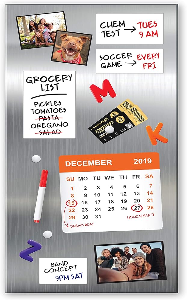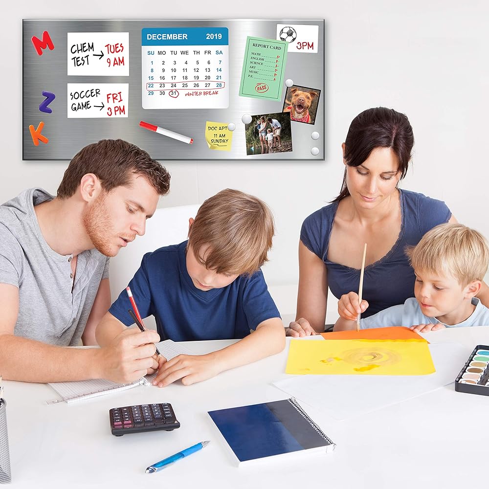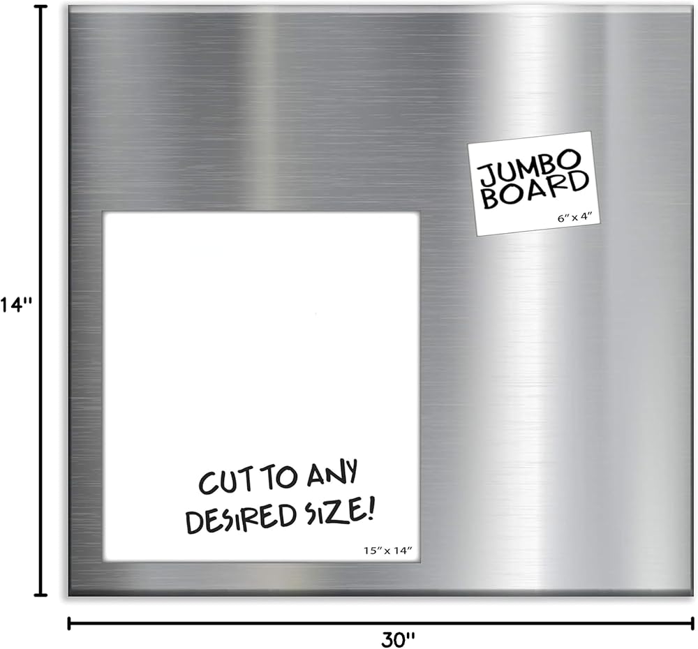 • 14 × 30 × 0.7 بوصة مغناطيس ولوحة رسائل. تأتي اللوحة مع وسادتين مغناطيسيتين للمسح الجاف يتم ربطهما باللوحة ويمكن قصهما إلى أي حجم مرغوب فيه. مقاس وسادات المسح الجافة 15 بوصة × 14 بوصة و6 × 4 بوصة