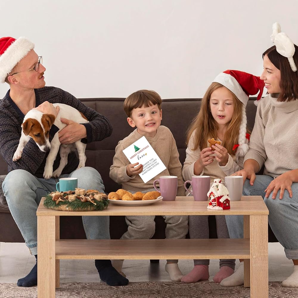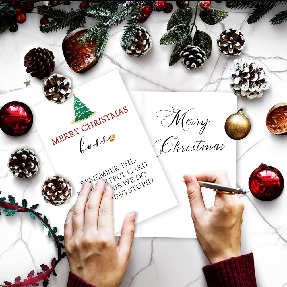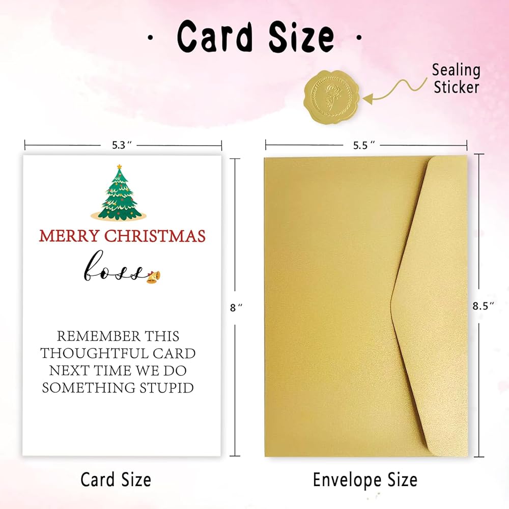 • يبلغ مقاس بطاقة عيد الميلاد 8.0*5.3 بوصة وتحتوي على كيس بلاستيكي شفاف ومظروف ذهبي.