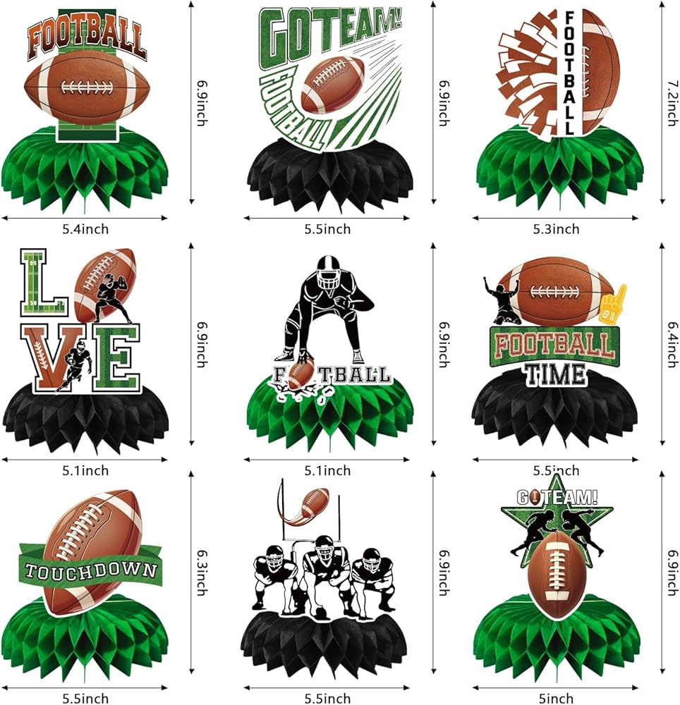 Football Themed Party Decorations: You will get 9 pieces of football table decorations. These football birthday decorations are perfect for you to host a football party theme or decorate a football decor party.