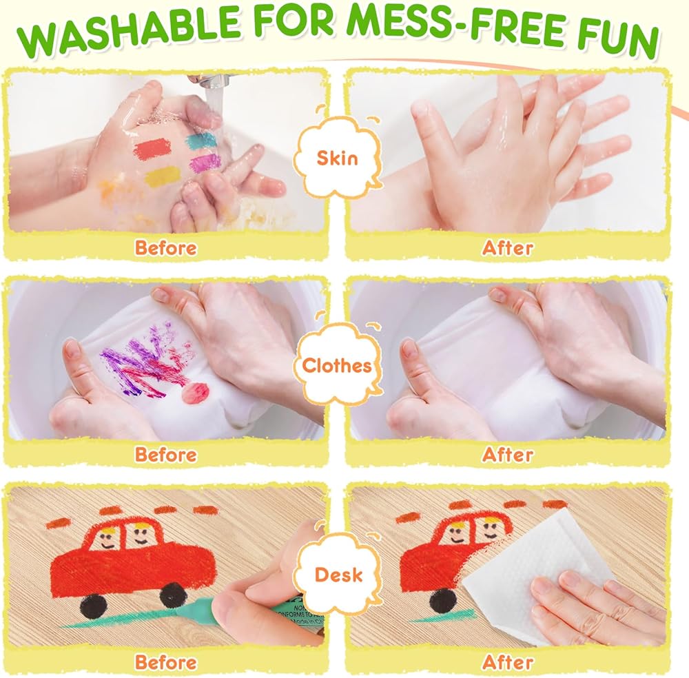 مادة آمنة على الأطفال: تتوافق أقلام التلوين الكبيرة لدينا مع معايير ASTM D-4236 وEN71، وهي آمنة وغير سامة، مما يضمن سلامة كل طفل. متينة وسهلة الشحذ، لون يدوم طويلاً، كتابة سلسة، أقلام تلوين قابلة للمسح والغسل تسمح لك بتعديل عملك الفني كما يحلو لك، مجموعة أدوات مثالية للعودة إلى المدرسة للأطفال والبنات والمدرسين، وأقلام تلوين كبيرة الحجم للفصل الدراسي. أقلام تلوين للأطفال من عمر 4 إلى 8 سنوات.