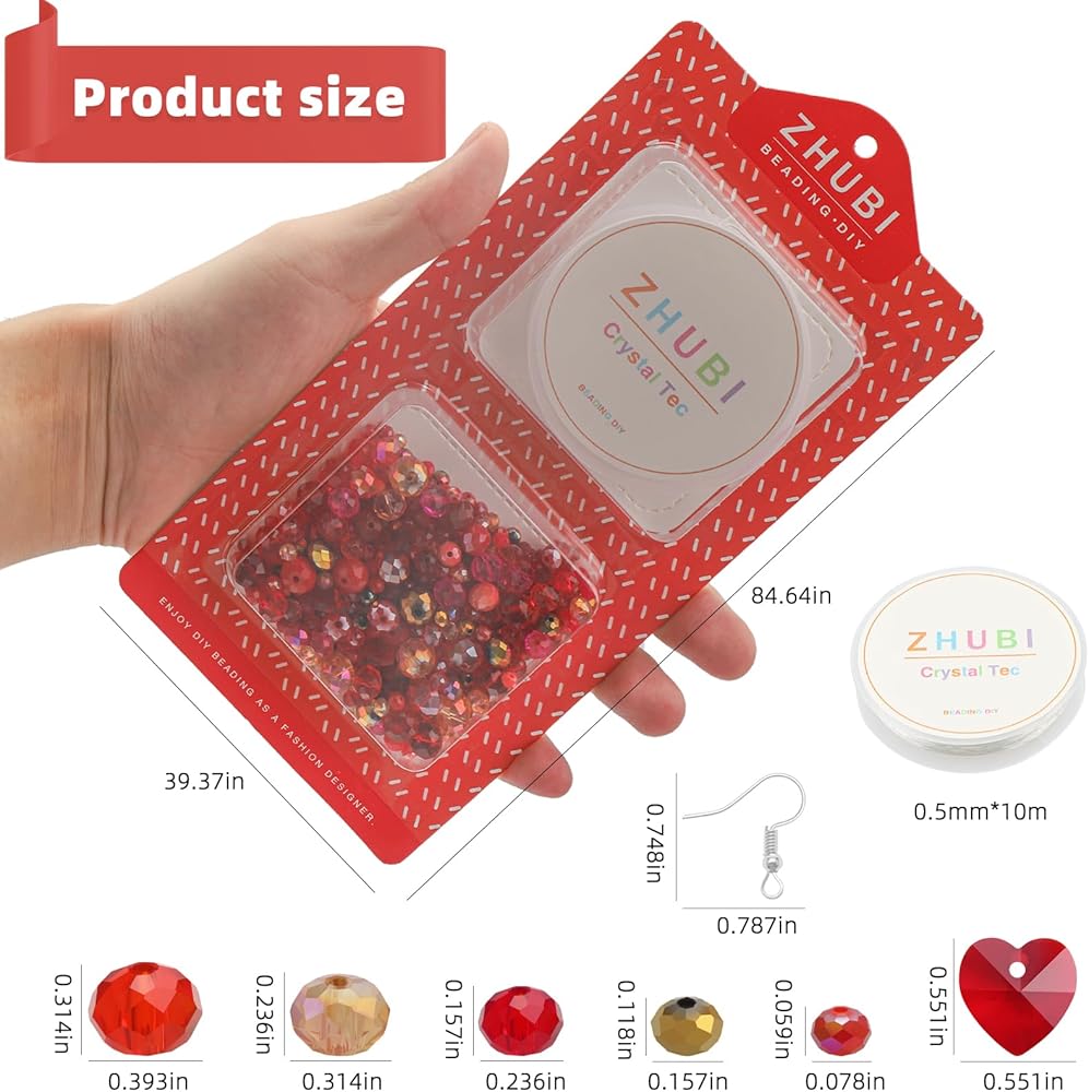 This premium crystal bead set, with approximately 600 pieces, includes 20PCS 10MM beads, 30PCS 8MM crystal rondelle beads, 50PCS 6MM rondelle beads, 300 PCS 4MM rondelle beads, 200 2MM beads, plus 2 heart pendants and 10 meters of elastic string—a complete toolkit for crafting stunning, multicolor jewelry pieces.Each bead color is individually packaged in a clear, easy-access box, ensuring seamless organization and storage. This multicolor bead kit caters to both beginners and experienced jewelry makers, allowing for endless combinations of bracelets, necklaces, earrings, and more. The variety of sizes and colors lets you explore designs for any occasion, from daily wear to festival jewelry, making this kit a versatile and thoughtful holiday gift or event giveaway.