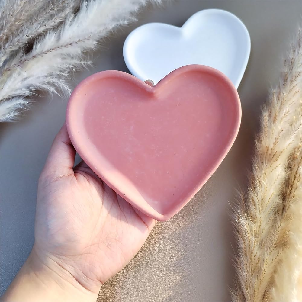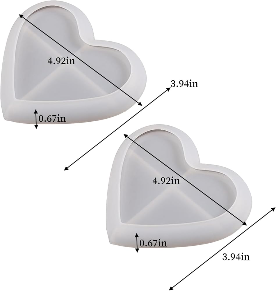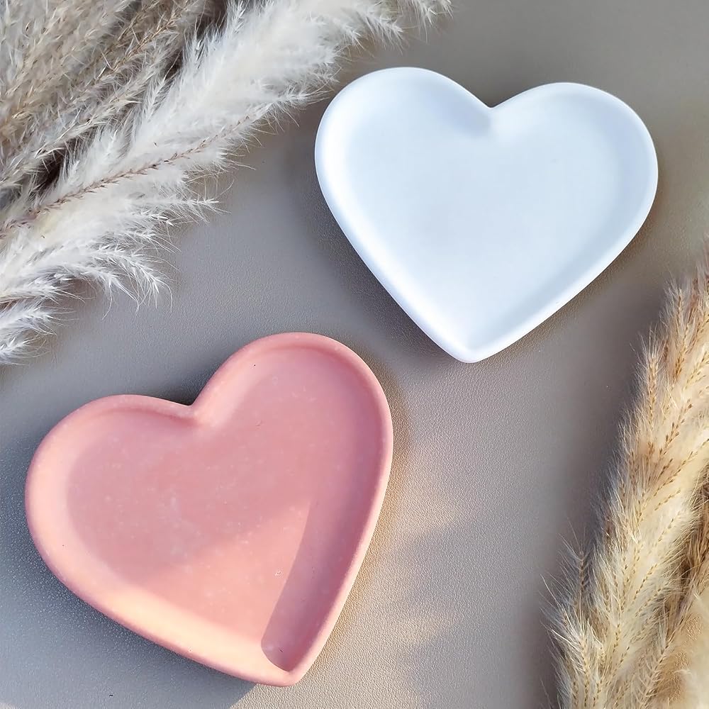 Wehous 2PCS قوالب صينية القلب للخرسانة الراتنج، قوالب سيليكون القلب، عيد الحب الحب على شكل قلب شمعة حامل المجوهرات لوحة حلية طبق راتنجات الايبوكسي قالب الصب، حاوية تخزين الحرف ديكور القالب