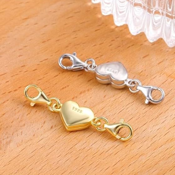 1 قطعة من مشابك المجوهرات الفضية العصرية على شكل قلب، مشبك مزدوج من الفضة الإسترلينية عيار 925، وموسع قلادة إغلاق رائعة لصنع سوار القلادة بنفسك، والفنون والحرف اليدوية والخياطة، ونتائج المجوهرات