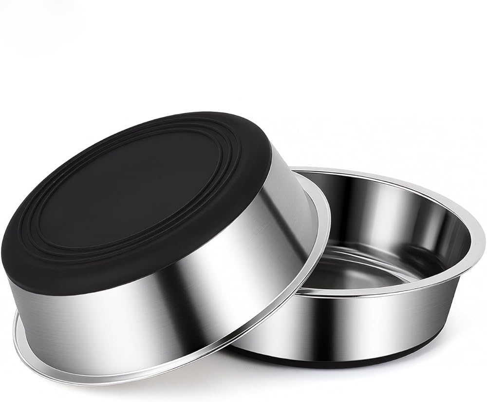 أوعية الكلاب المصنوعة من الفولاذ المقاوم للصدأ من YINGFAN، وعاء ماء وطعام للكلاب غير قابل للانزلاق، عبوتان (6.9 × 2 بوصة)، كل منها يحمل ما يصل إلى 3 أكواب (أسود)